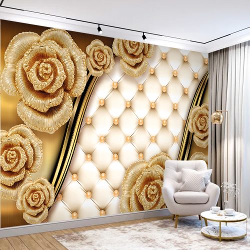 Zarif Altın Gül Desenli Lüks Duvar Kağıdı