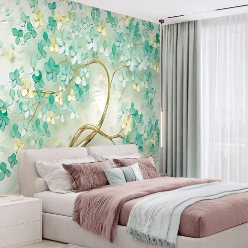 Ağaç ve Yaprak Desenli Duvar Kağıdı