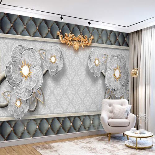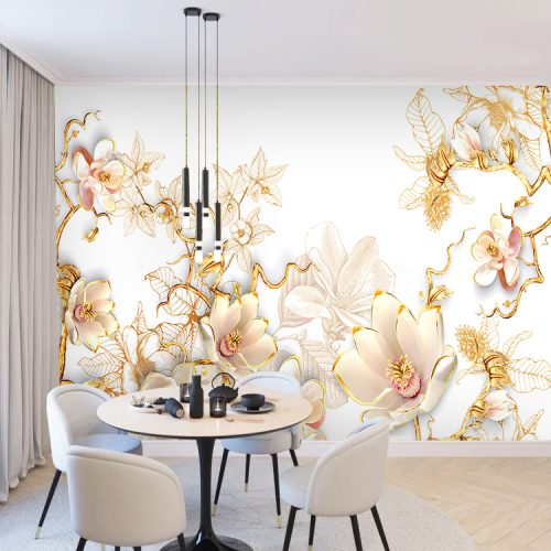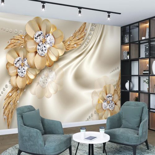 Zarif Altın Çiçek Desenli Lüks Duvar Kağıdı –