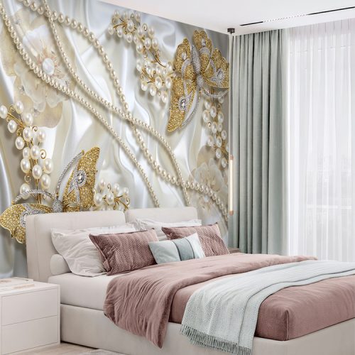Zarif Altın ve İnci Desenli Lüks Duvar Kağıdı