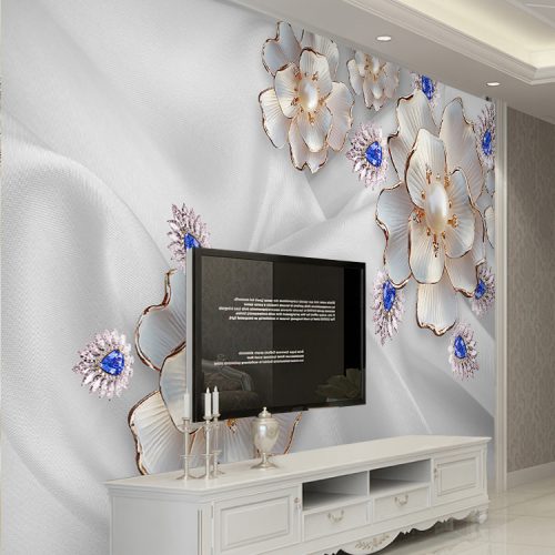 Zarif Beyaz Çiçek Desenli Lüks Duvar Kağıdı