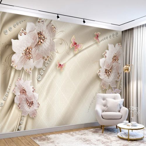 Zarif Çiçek ve Kelebek Desenli Lüks Duvar Kağıdı