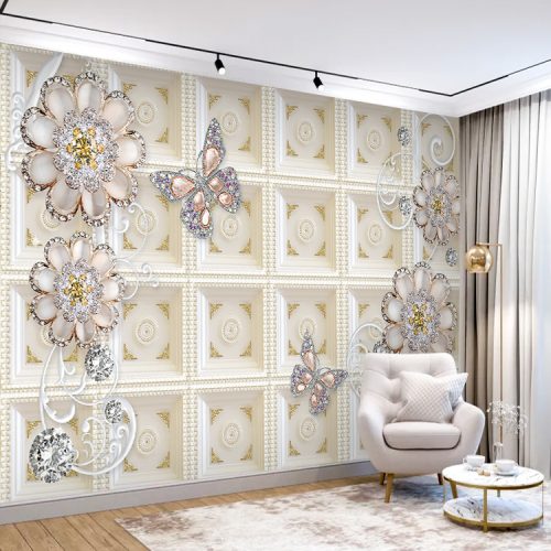 Zarif Çiçek ve İnci Desenli Lüks Duvar Kağıdı