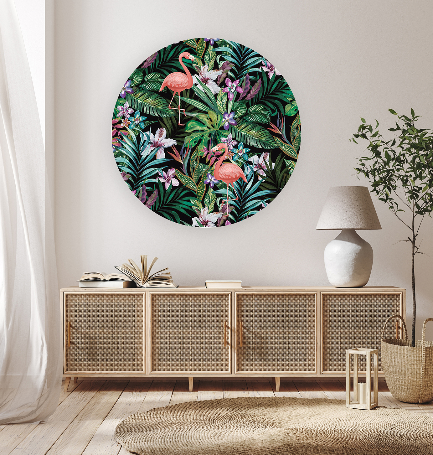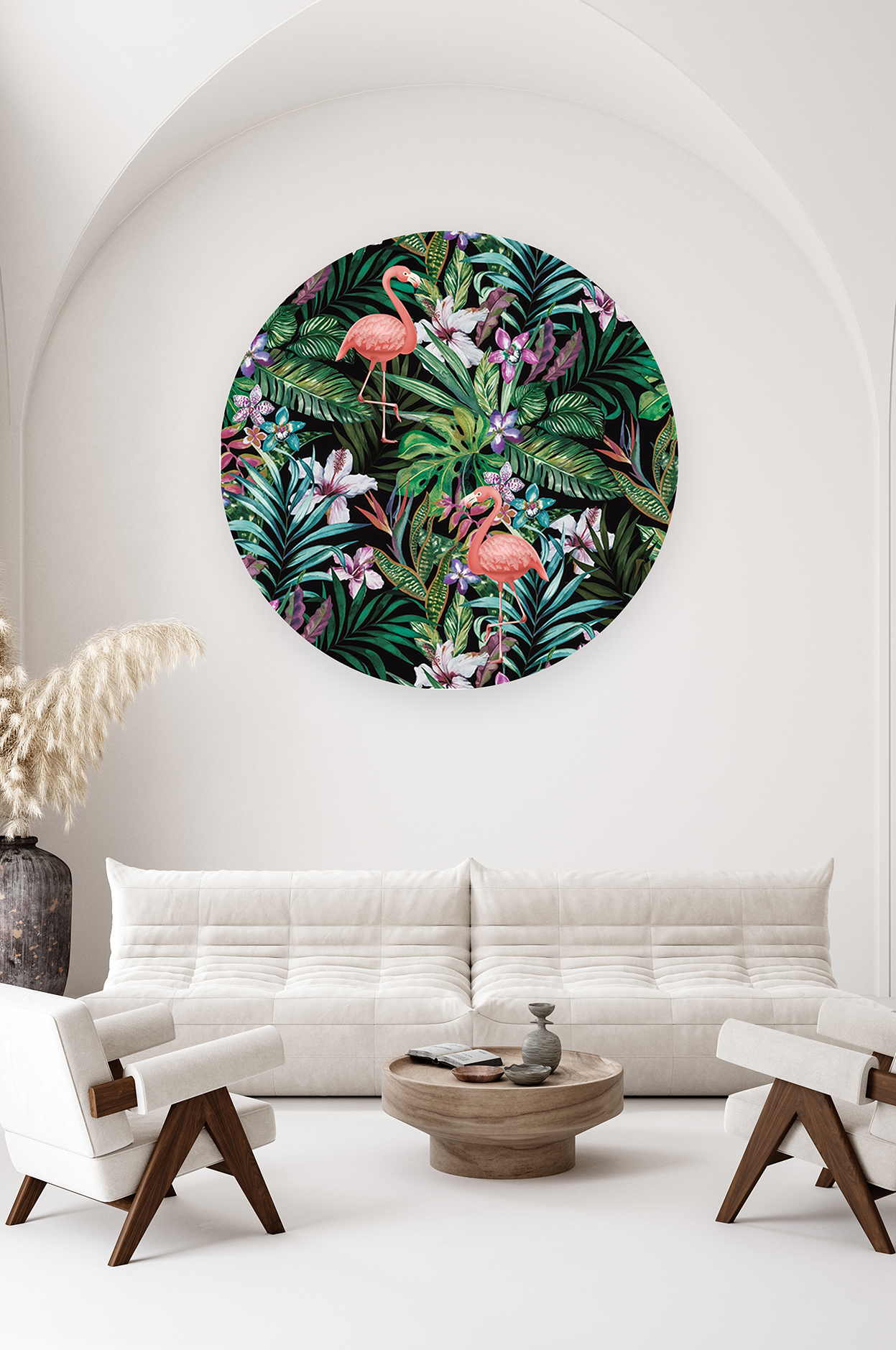 Flamingolar ve Tropikal Bitkiler Duvar Kağıdı – Kendinden Yapışkanlı Canlı Tasarım 🎨🚂