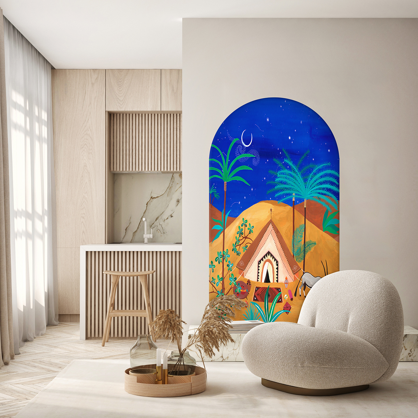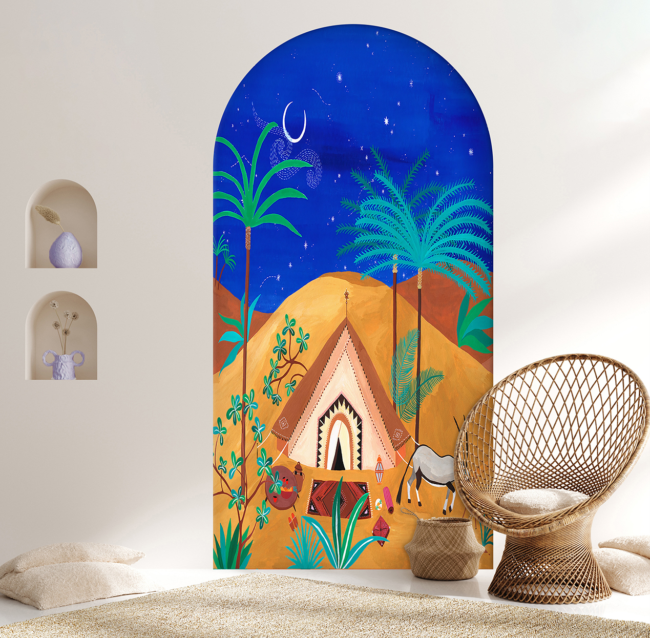 Gece Çöl Manzarası Duvar Kağıdı – Egzotik ve Huzurlu Bir Atmosfer 🎨🚂