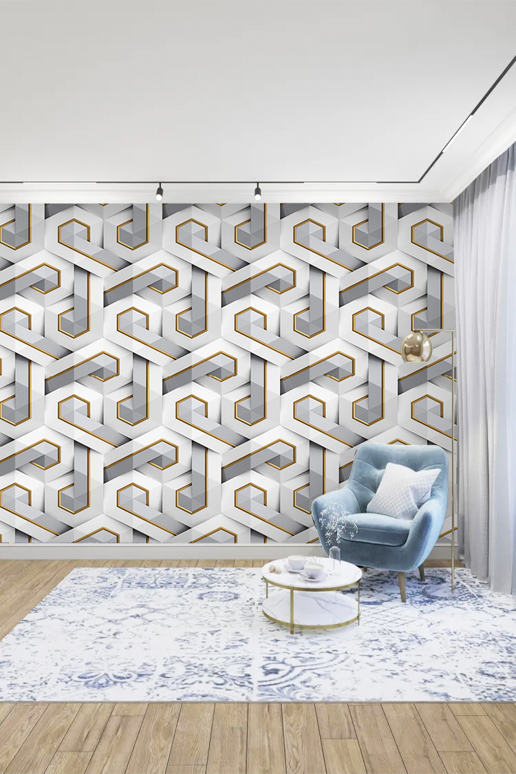 Geometrik Desenli 3D Duvar Kağıdı – Modern ve Şık Tasarım