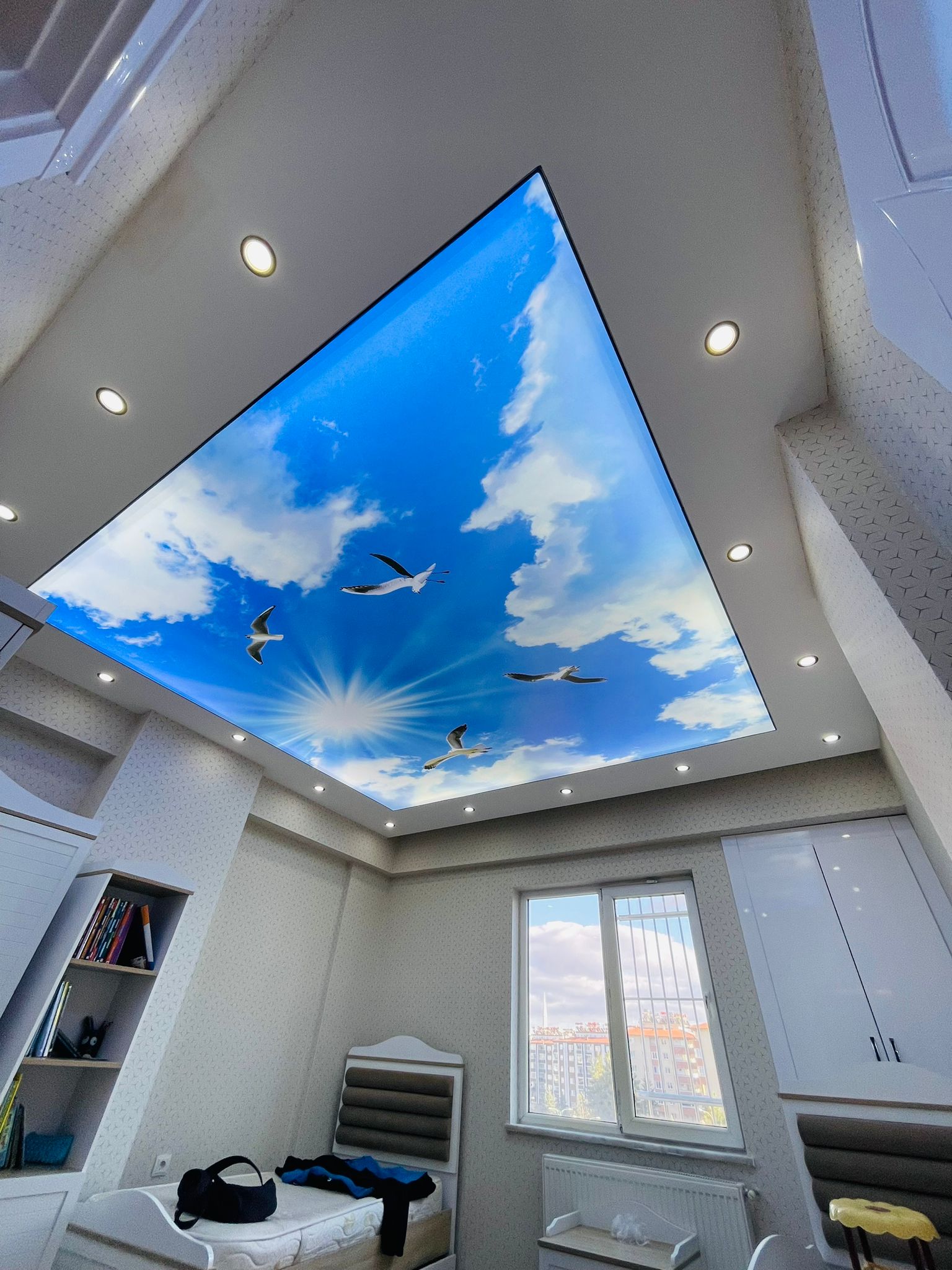 Gökyüzü Temalı Gergi Tavan | Ferah ve Doğal Tasarım