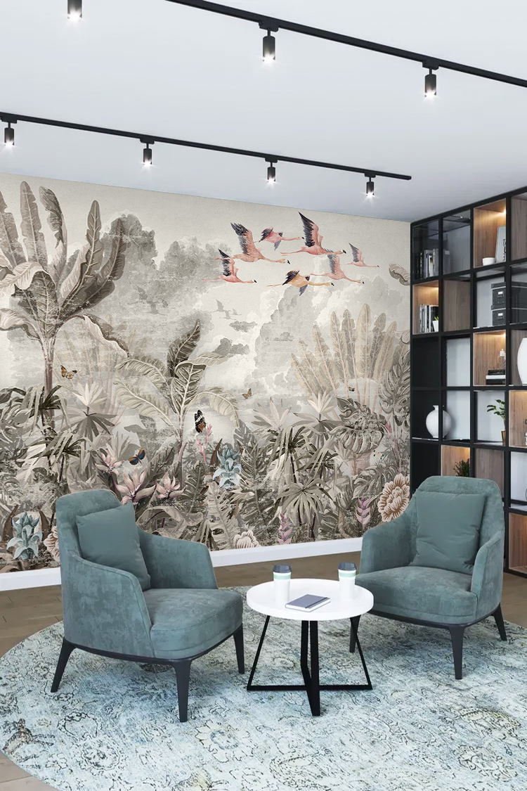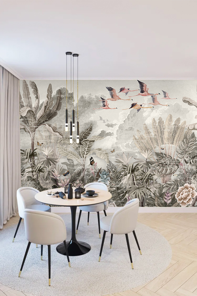Grayscale Egzotik Flamingo Duvar Kağıdı