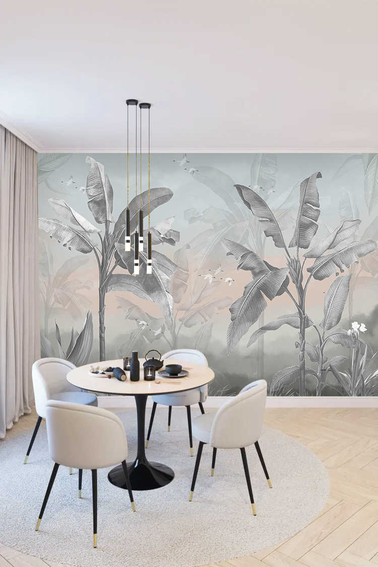 Grayscale Tropikal Palmiye Duvar Kağıdı