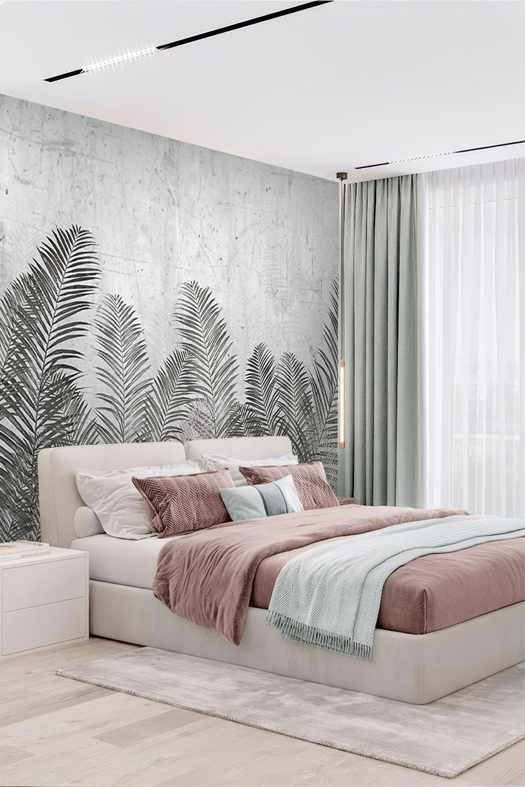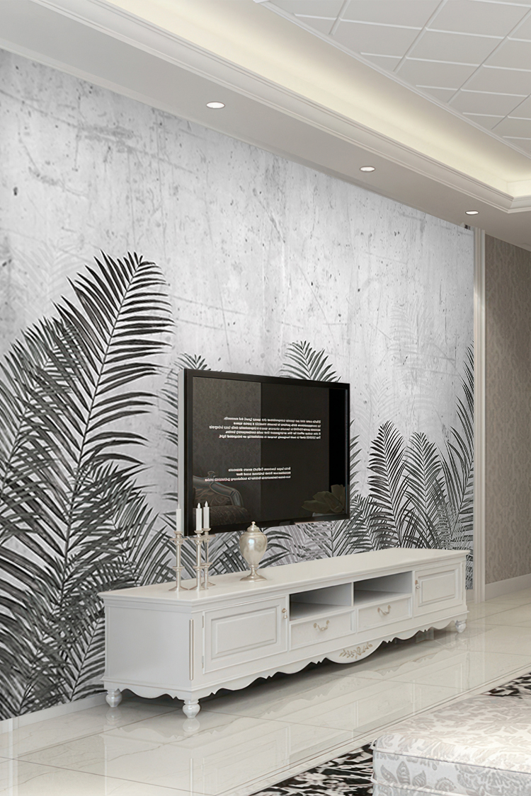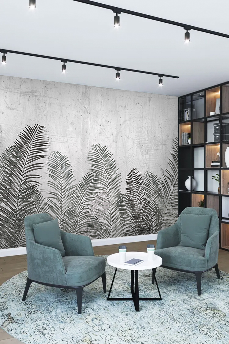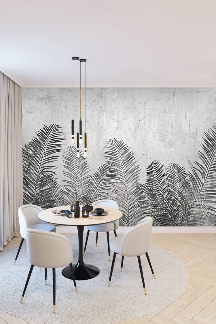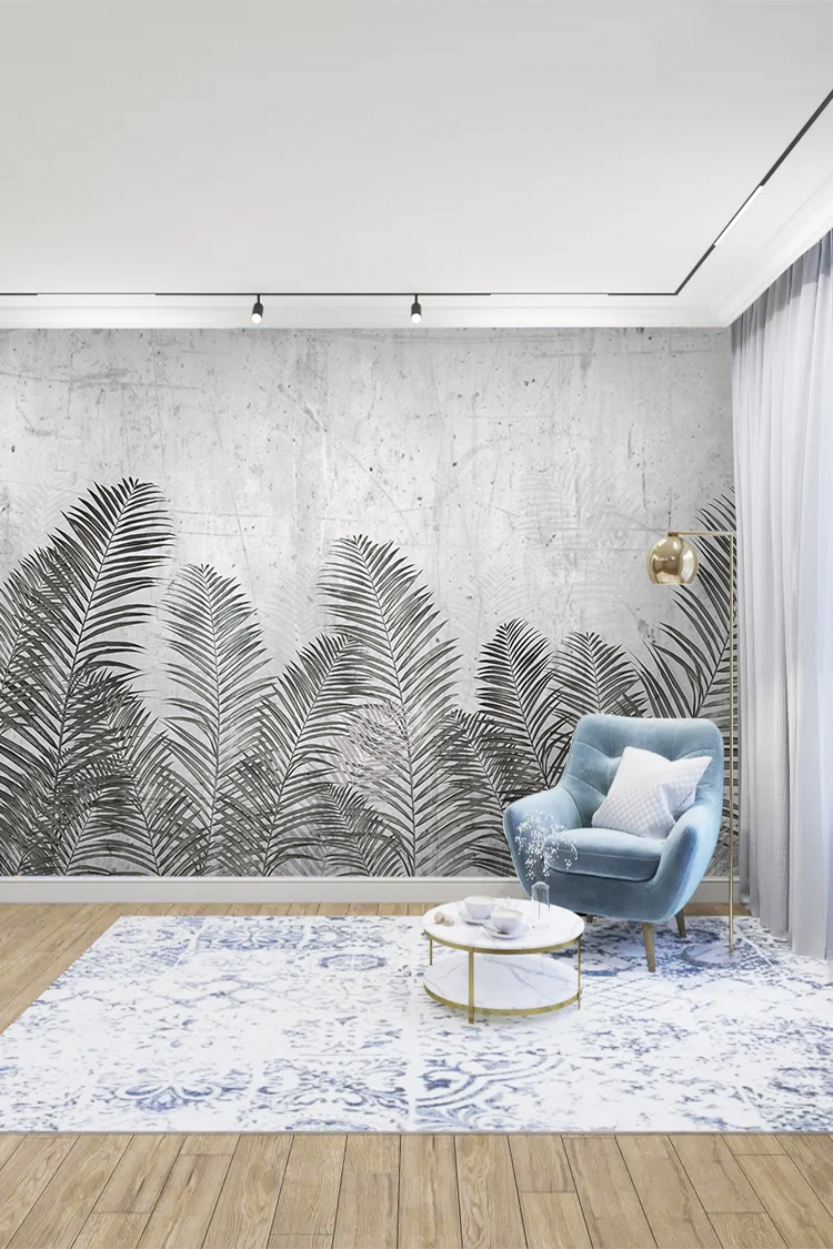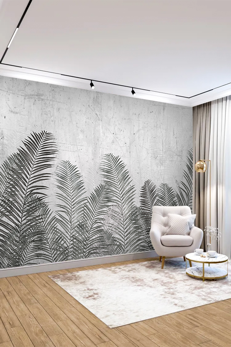 Gri Tonlarında Palmiyeli Duvar Kağıdı