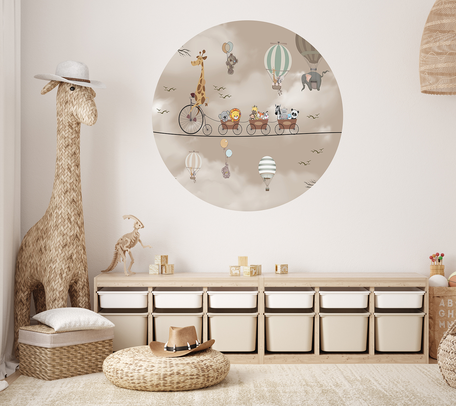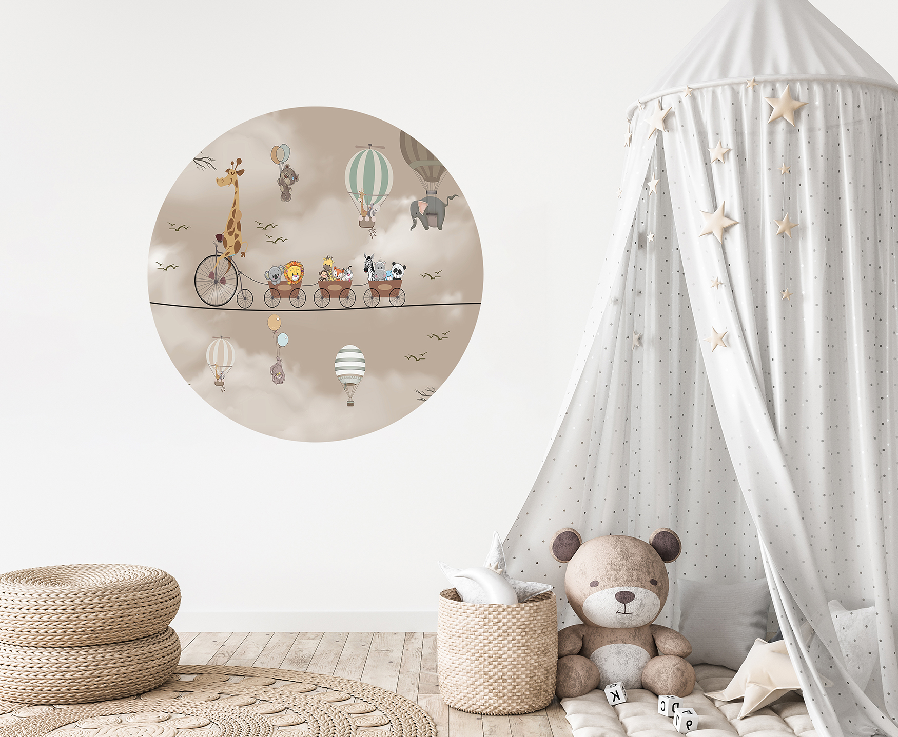 Hayvanlar ve Balonlar Duvar Kağıdı – Neşeli Safari Tasarımı 🎨🚂