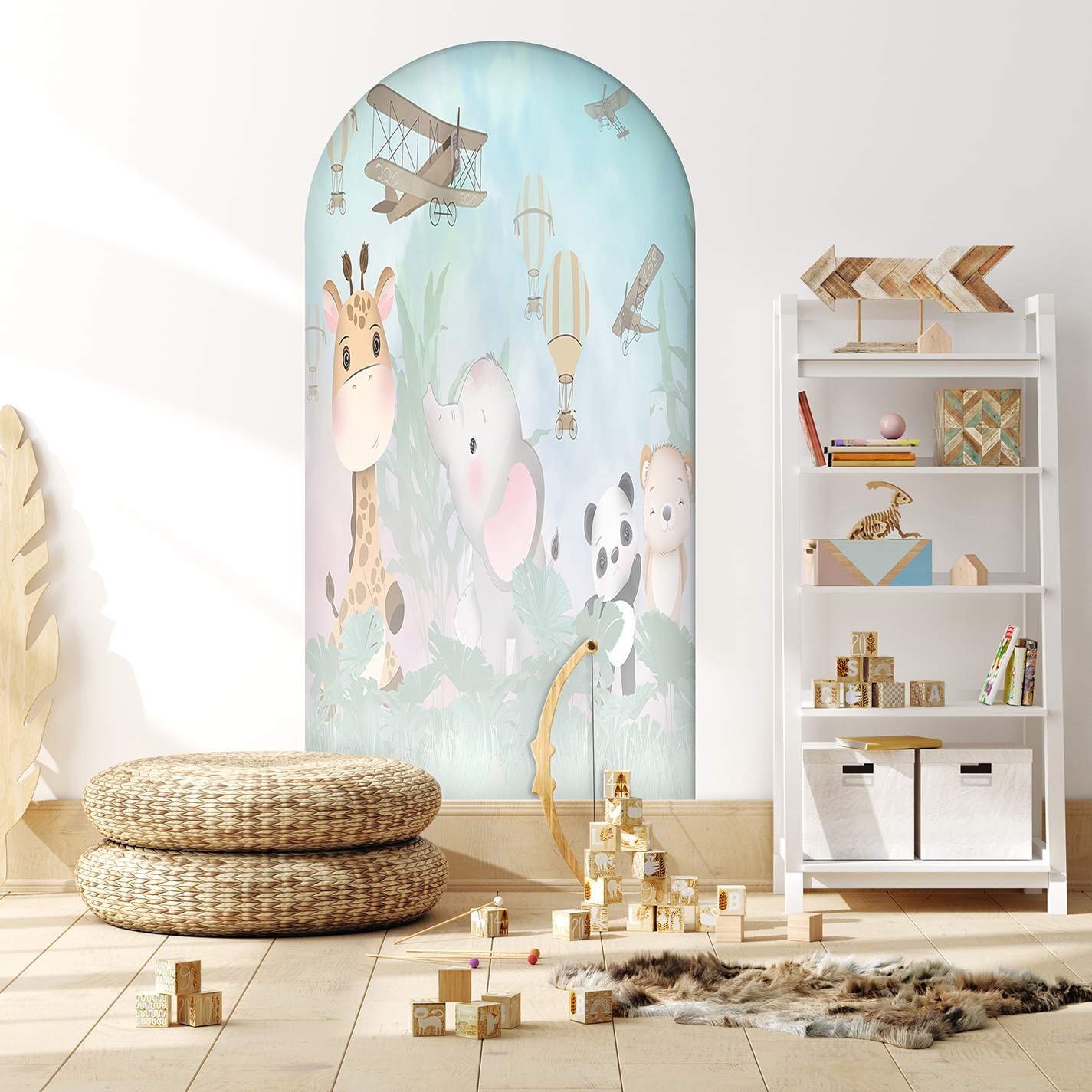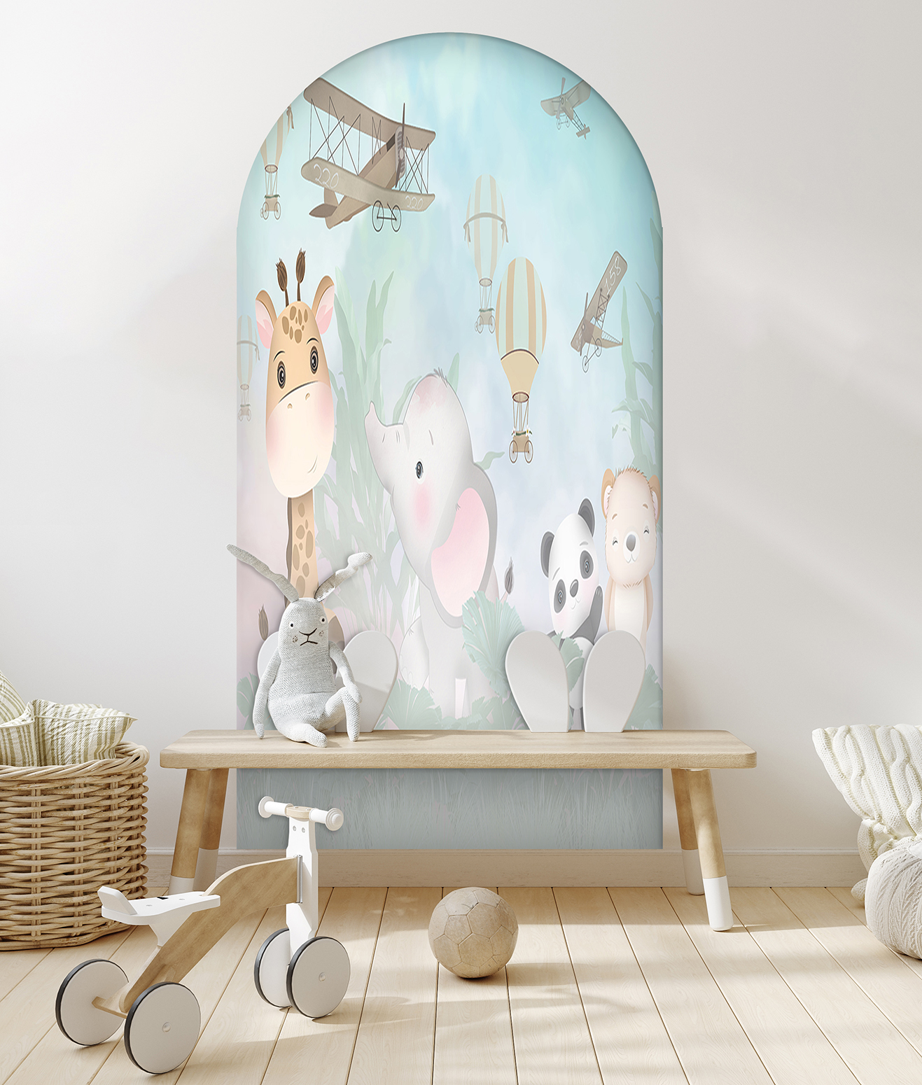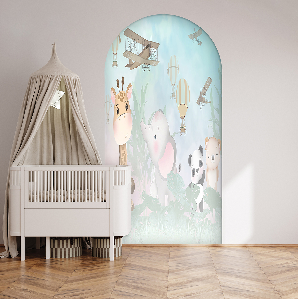 Hayvanlar ve Uçan Balonlar Temalı Duvar Kağıdı – Çocuk Odası Dekoru 🎨🚂