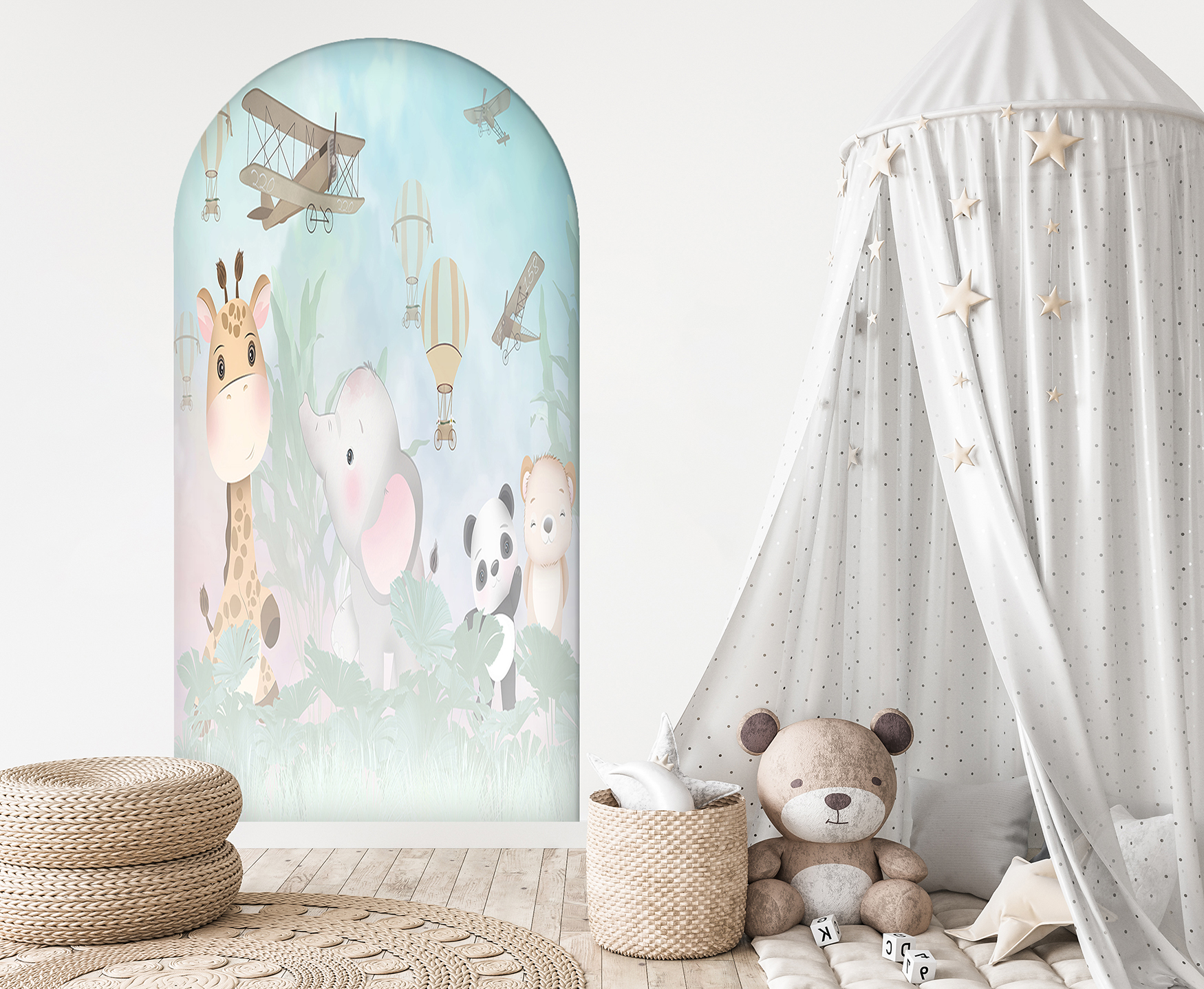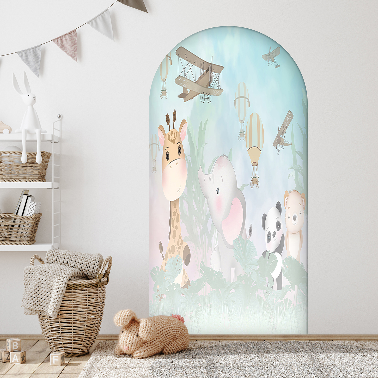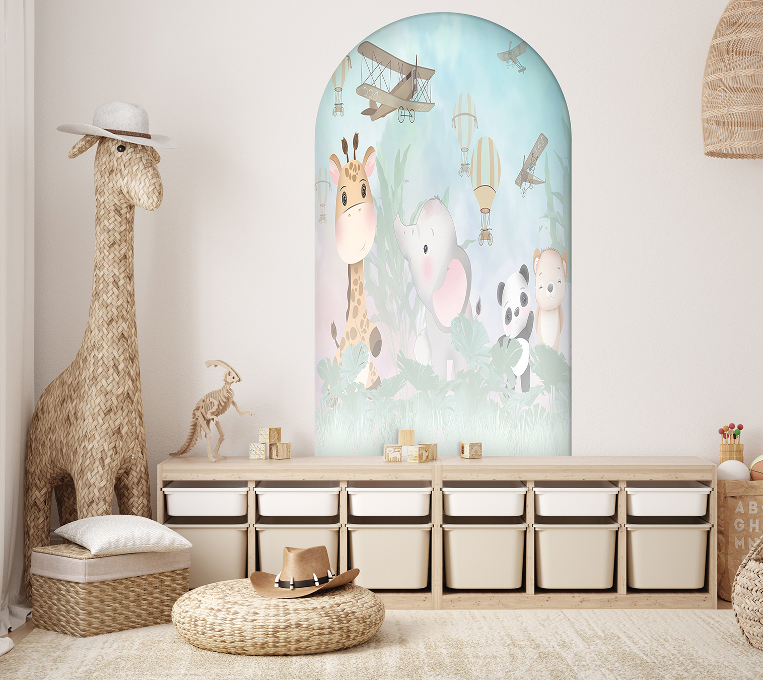 Hayvanlar ve Uçan Balonlar Temalı Duvar Kağıdı – Çocuk Odası Dekoru 🎨🚂