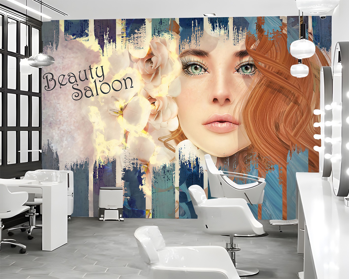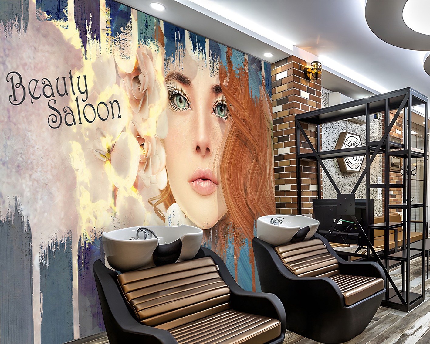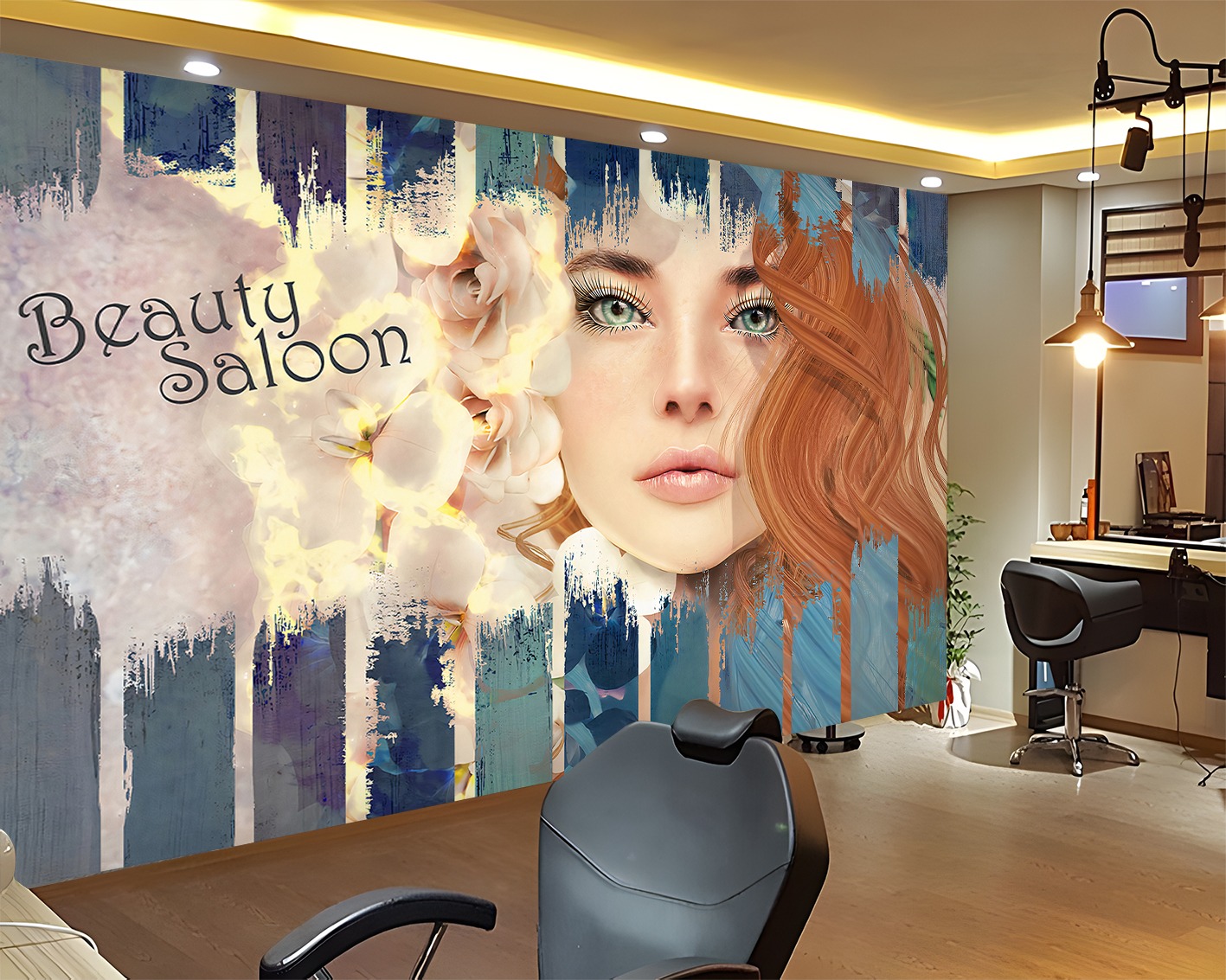 Kadın Portreli Güzellik Salonu Duvar Kağıdı