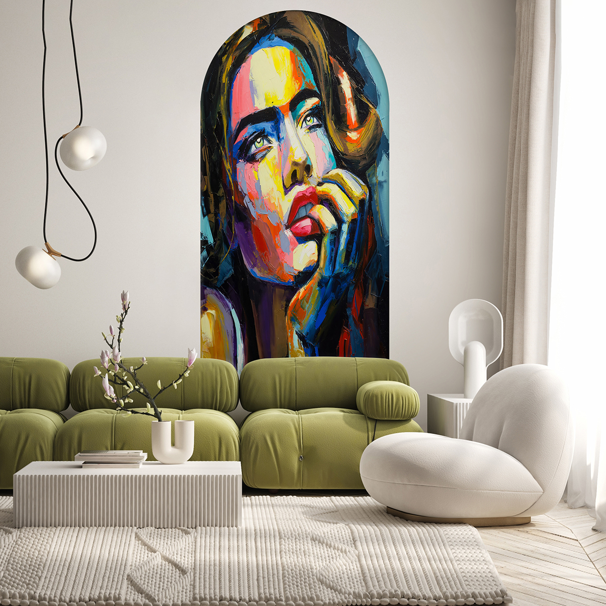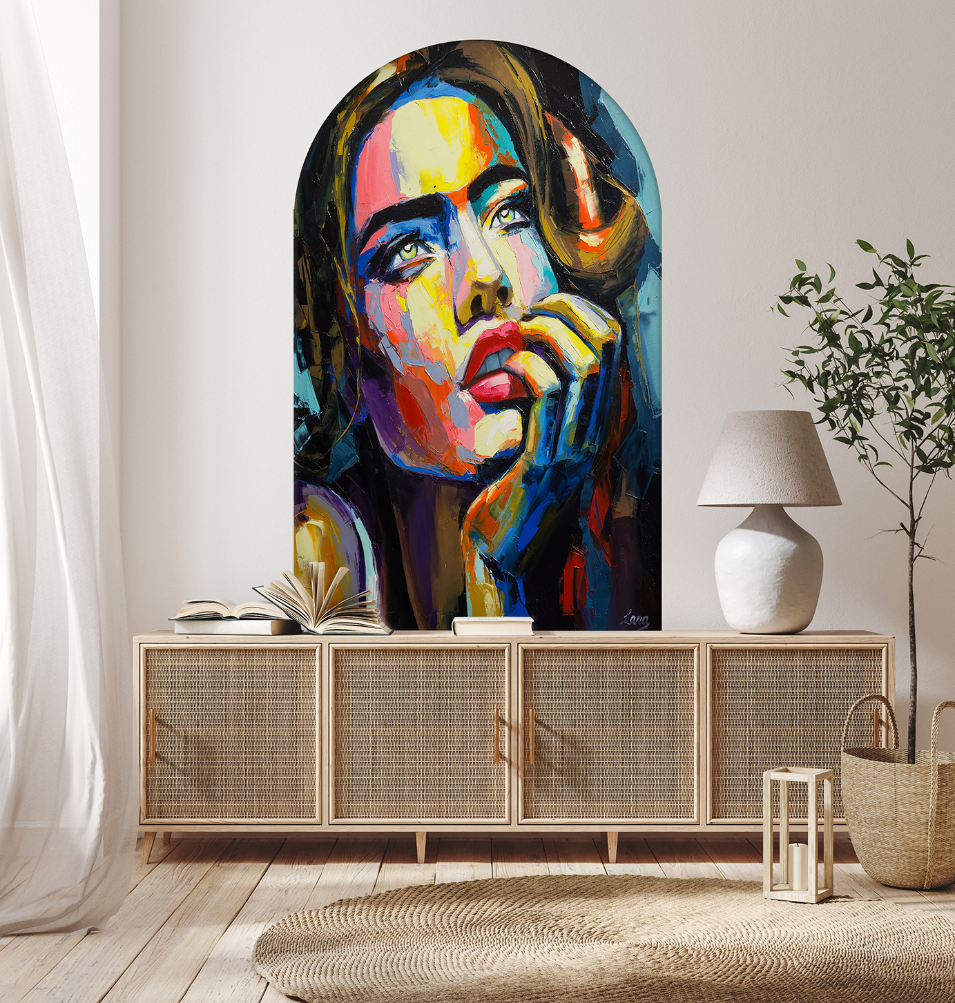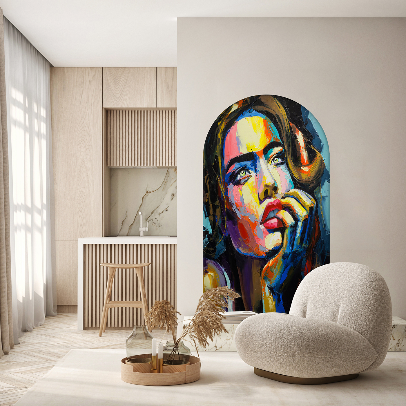 Kadın Portresi ve Renkli Desen Duvar Kağıdı – Sanatsal Tasarım 🎨🚂