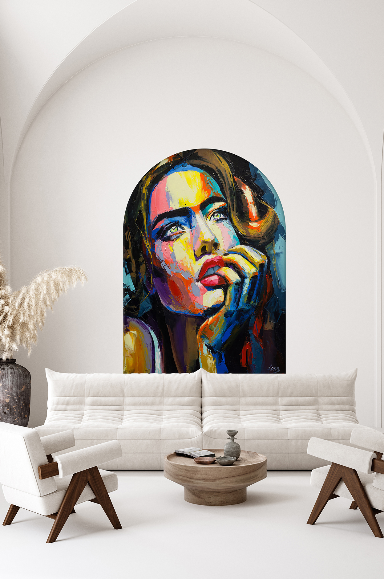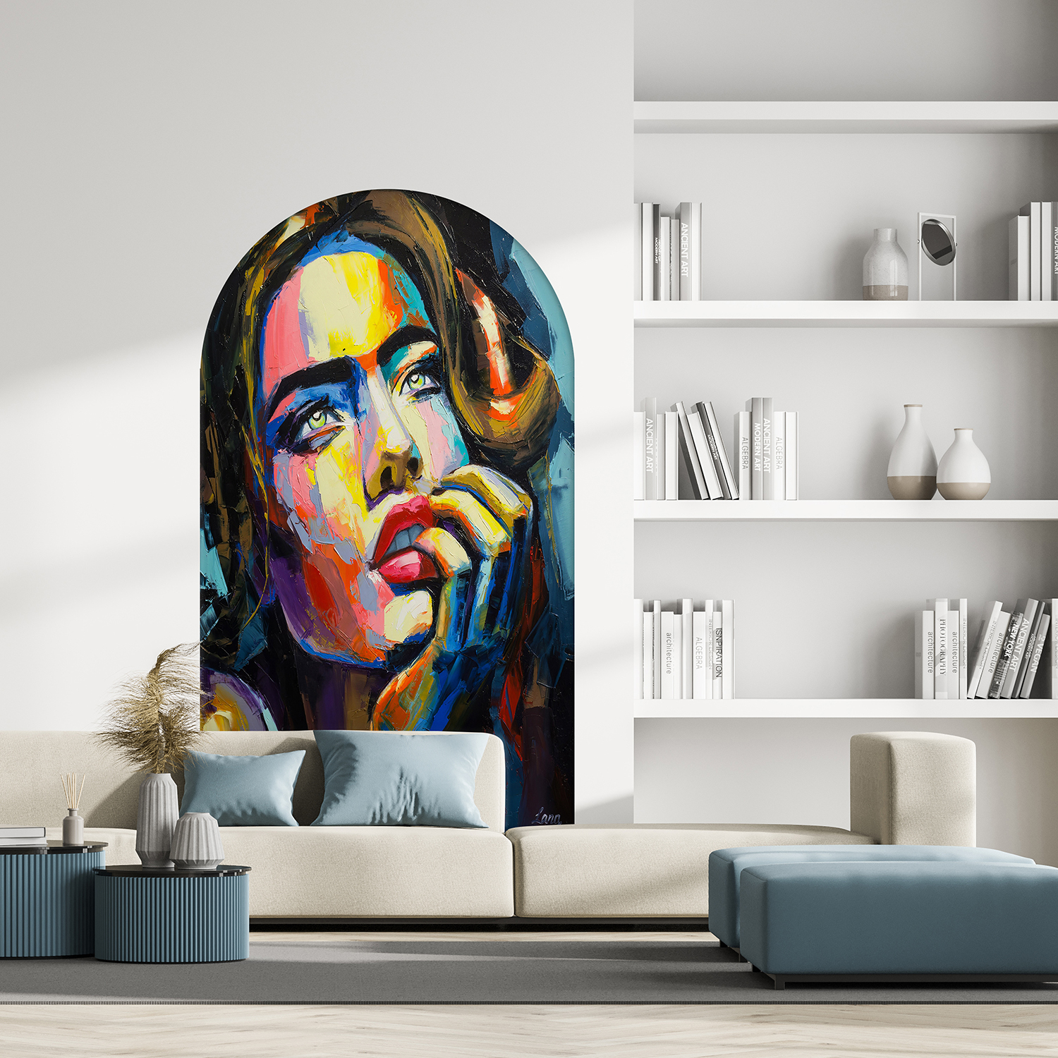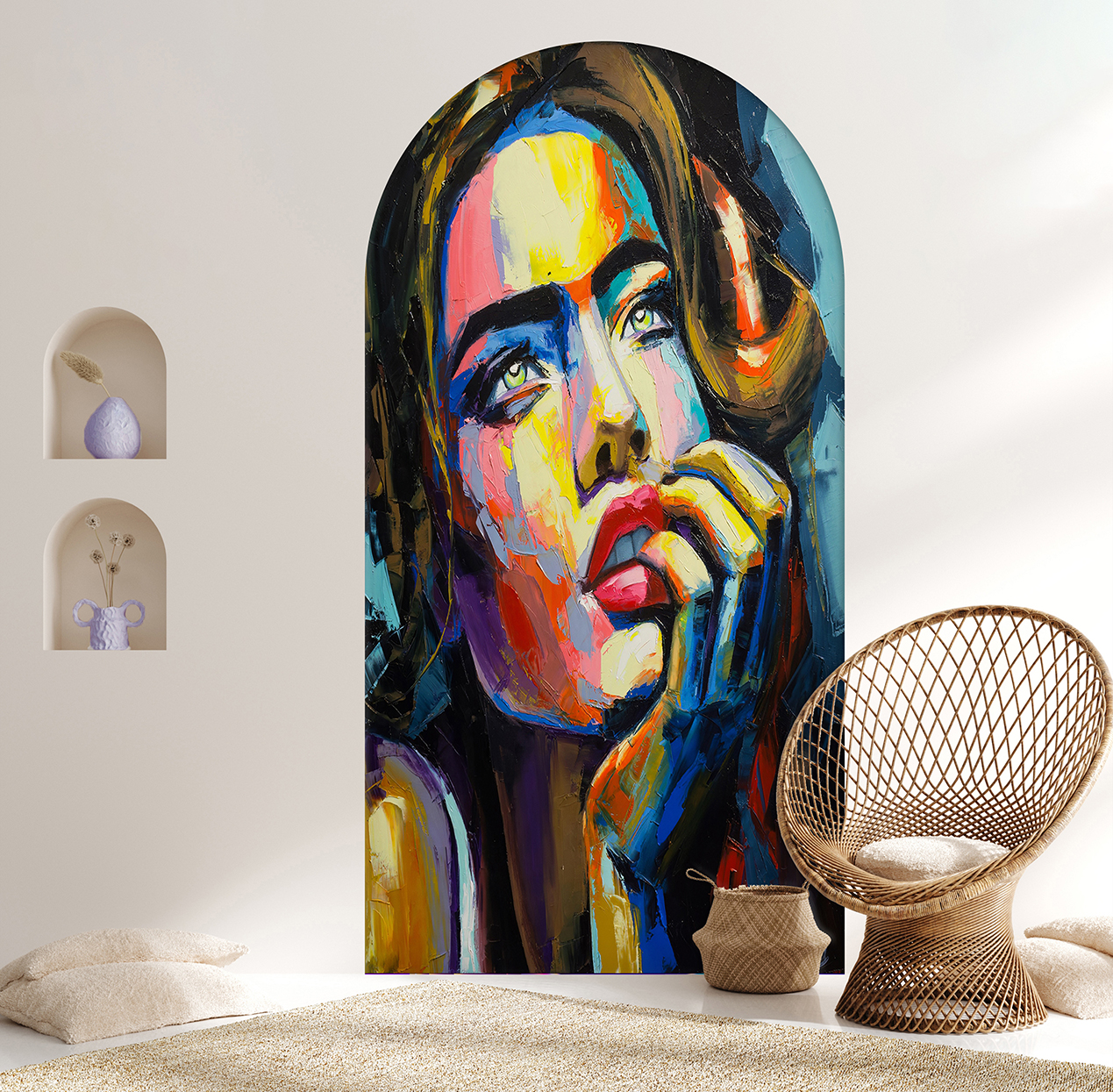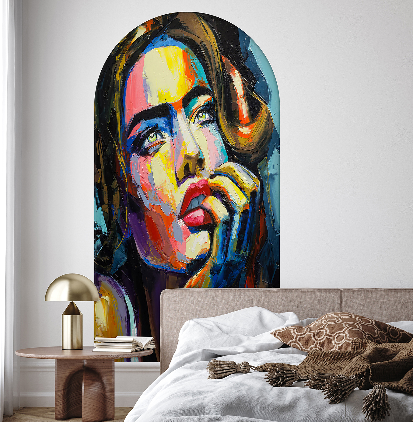 Kadın Portresi ve Renkli Desen Duvar Kağıdı – Sanatsal Tasarım 🎨🚂