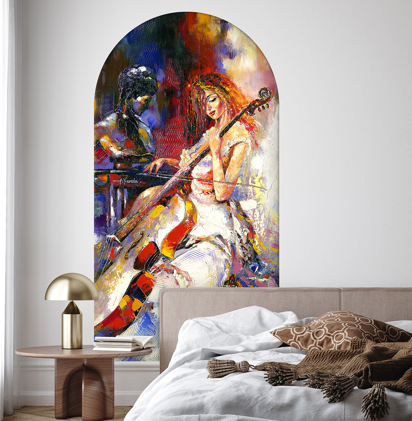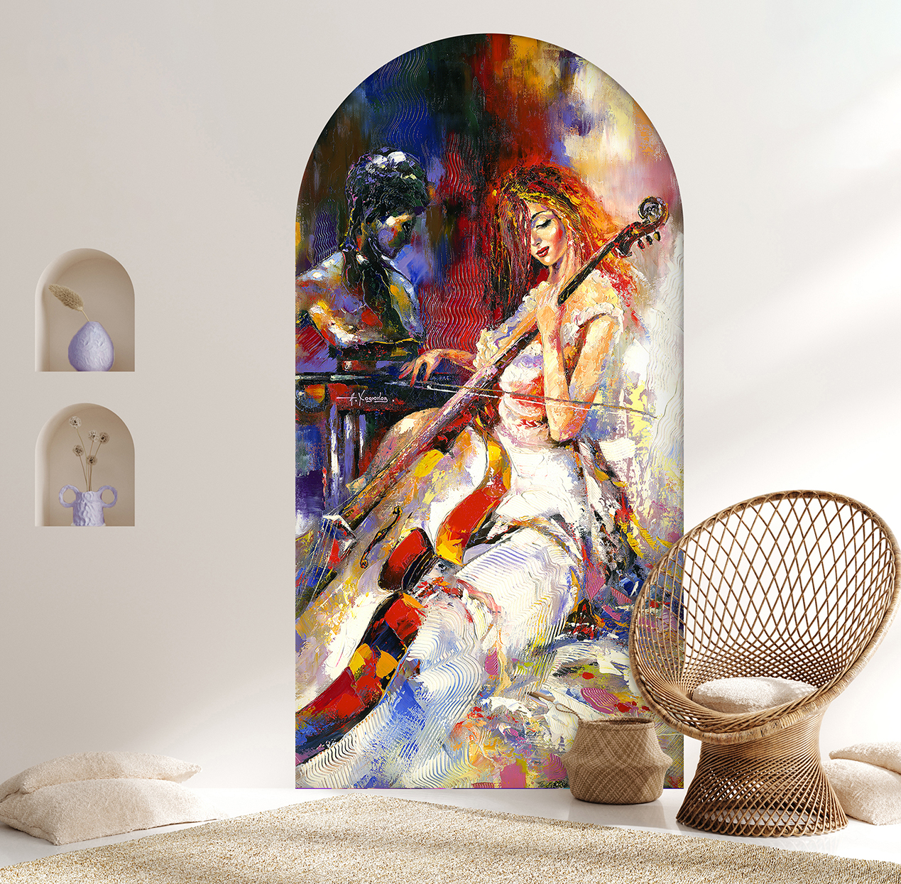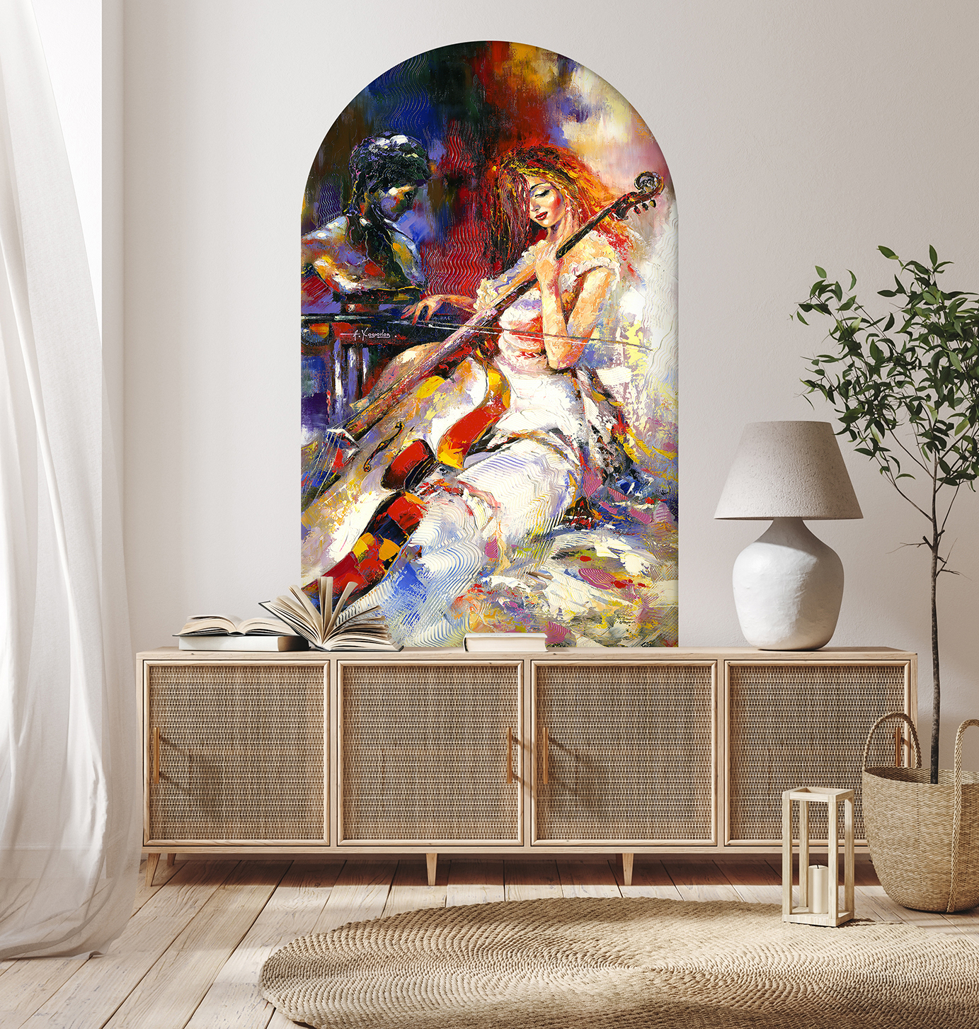 Kadın ve Çello Desenli Duvar Kağıdı – Sanatsal Tasarım 🎨🚂