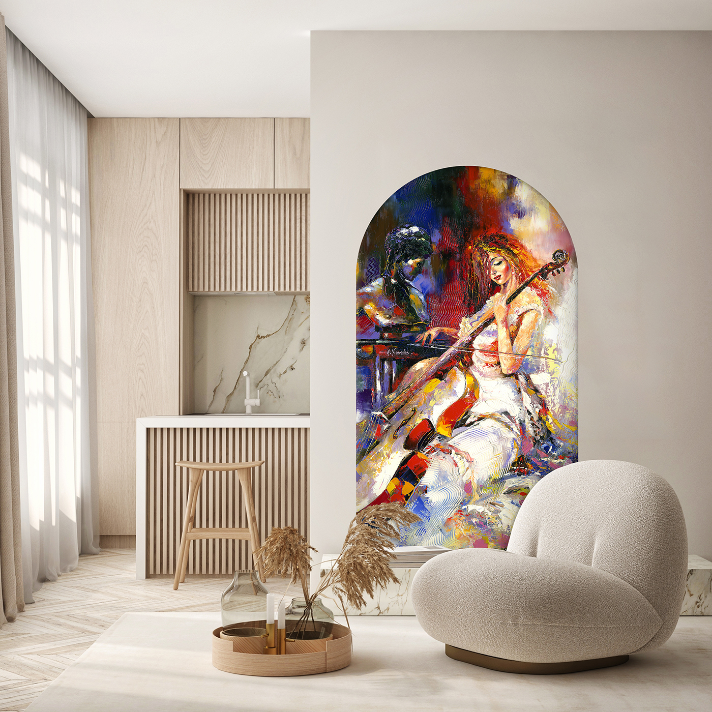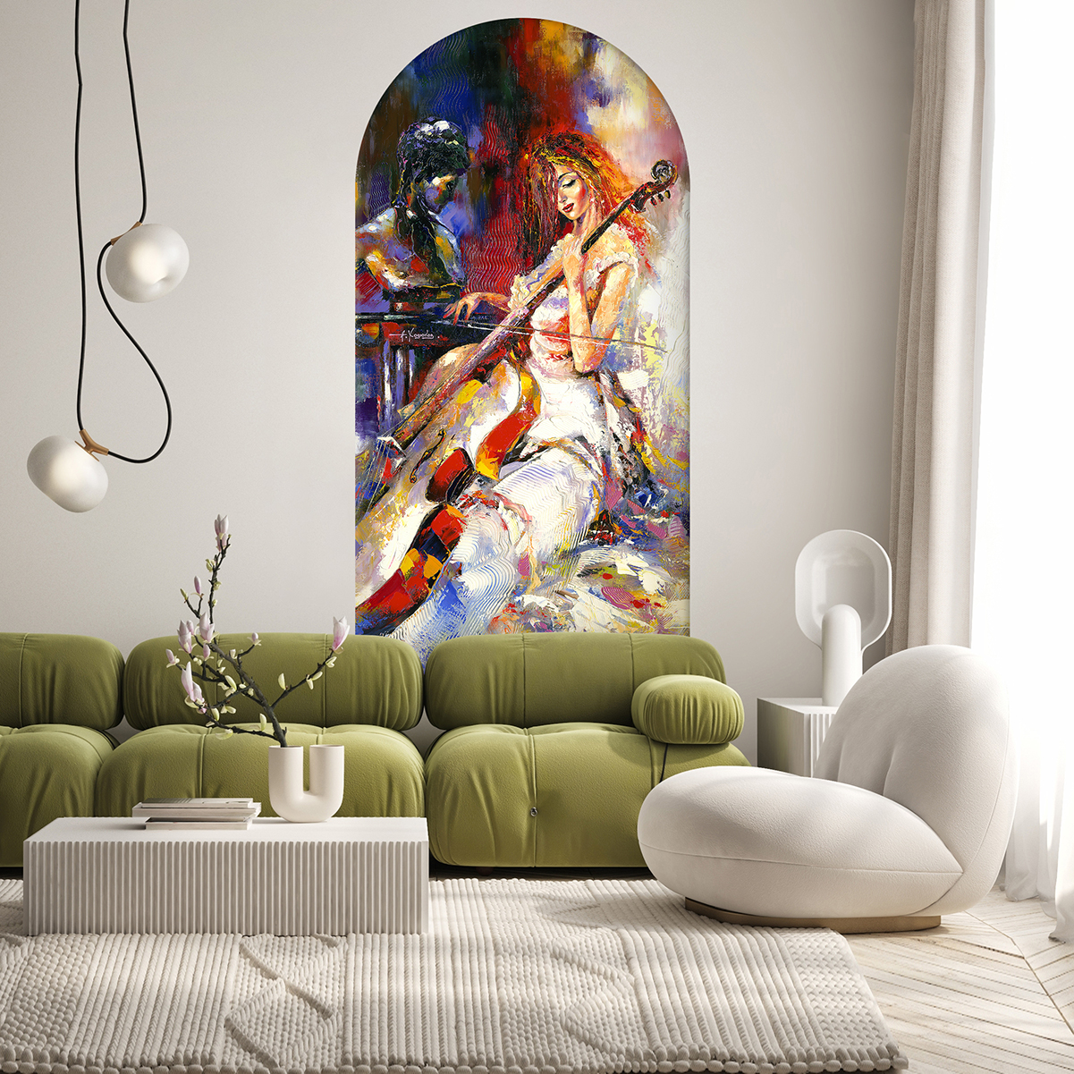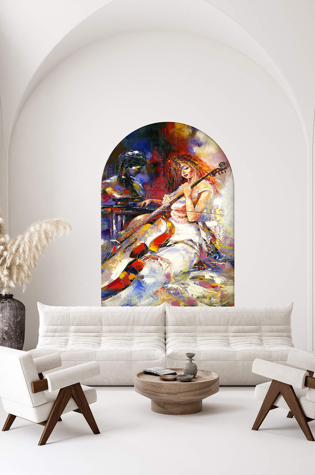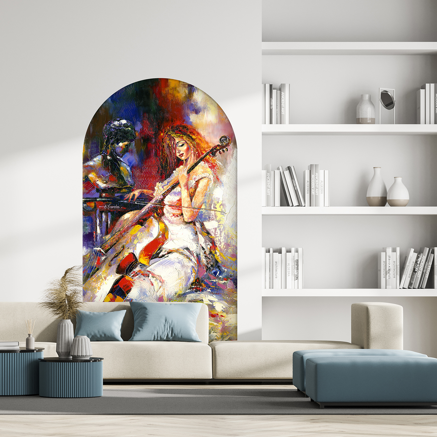 Kadın ve Çello Desenli Duvar Kağıdı – Sanatsal Tasarım 🎨🚂