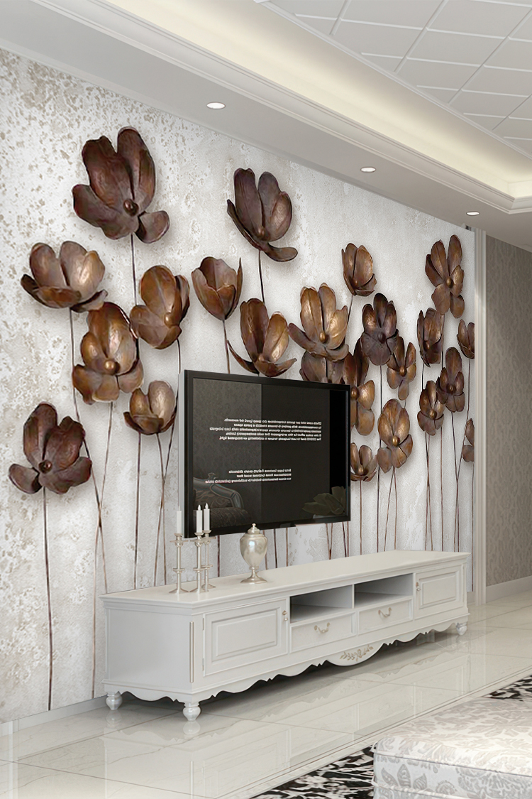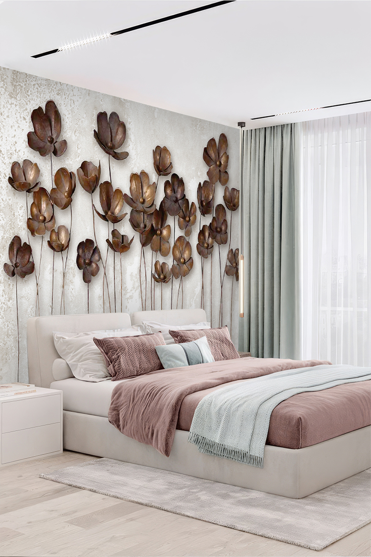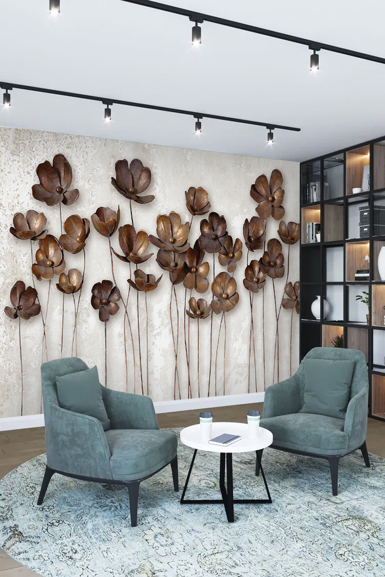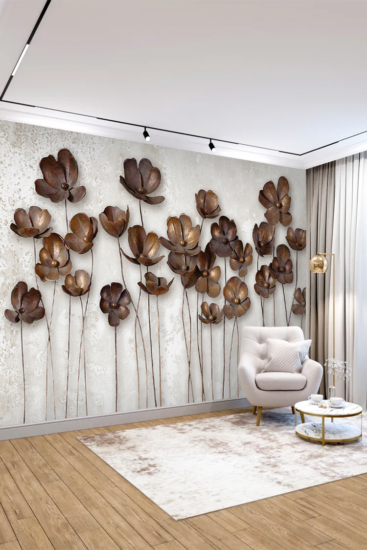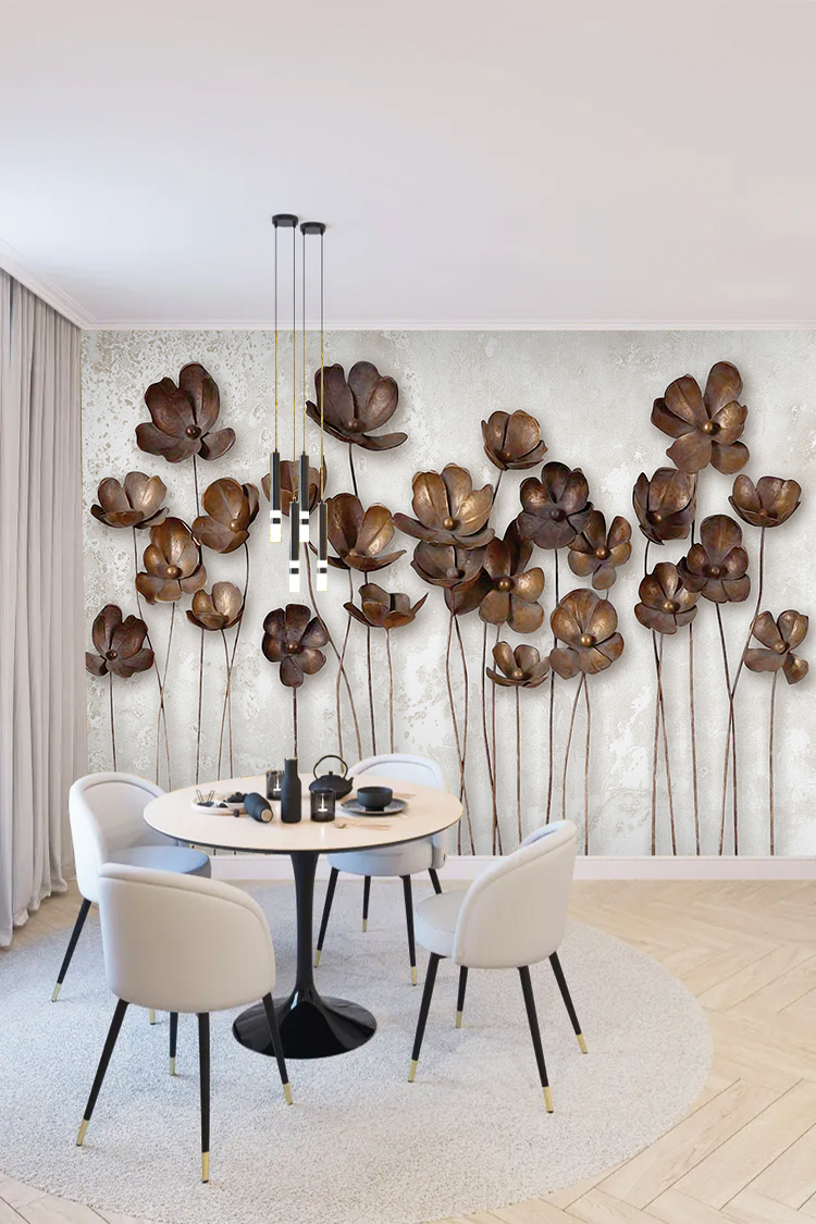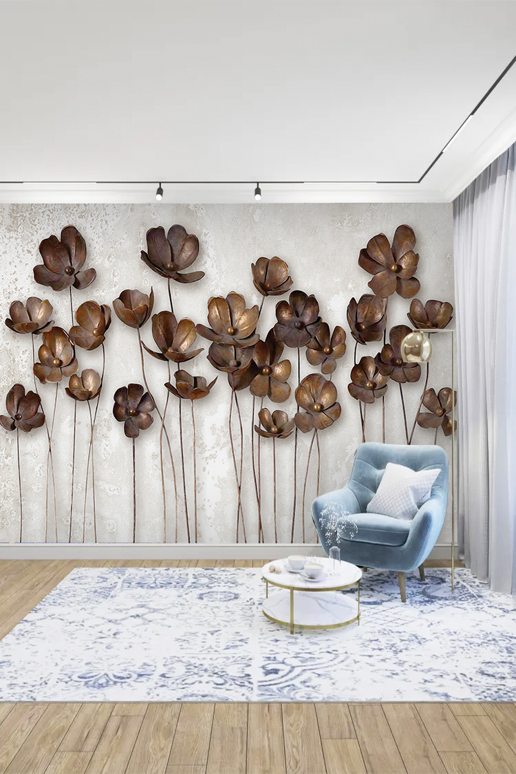 Kahverengi Çiçek Desenli Duvar Kağıdı