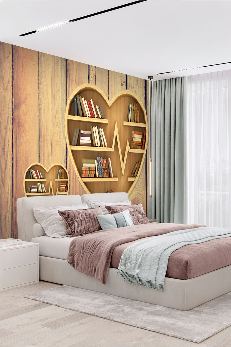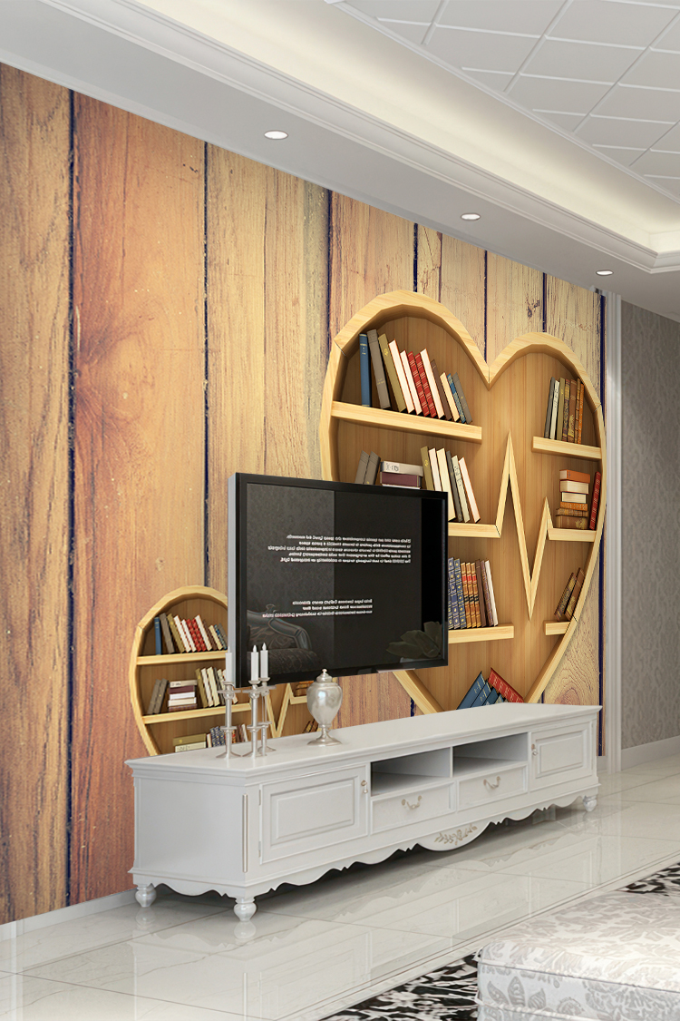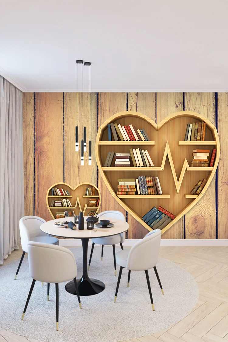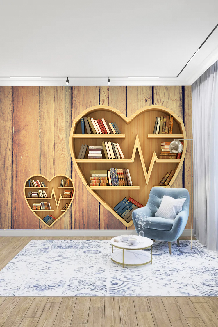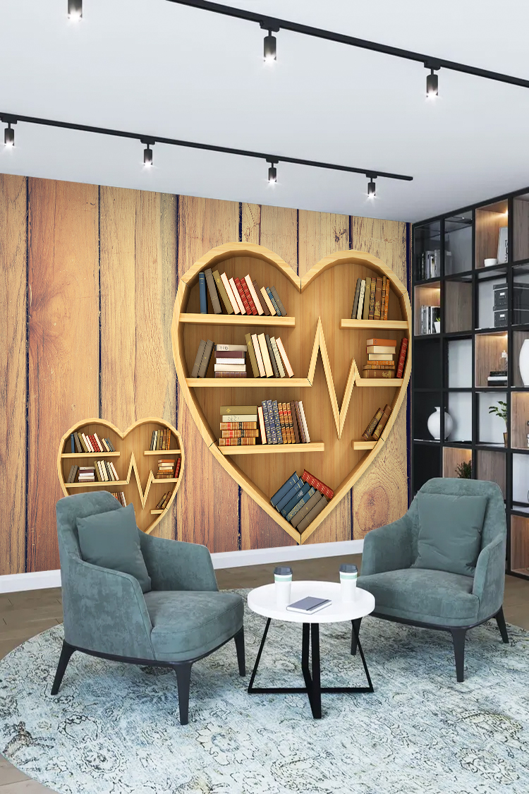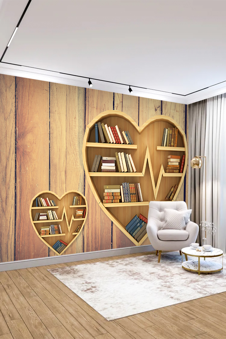 Kalp Şeklinde Kitaplık Duvar Kağıdı