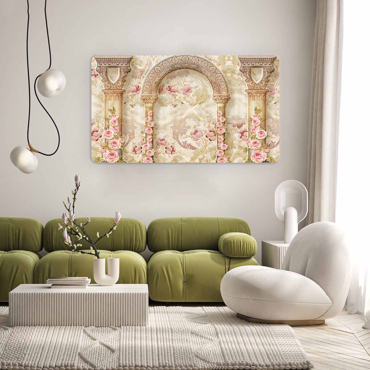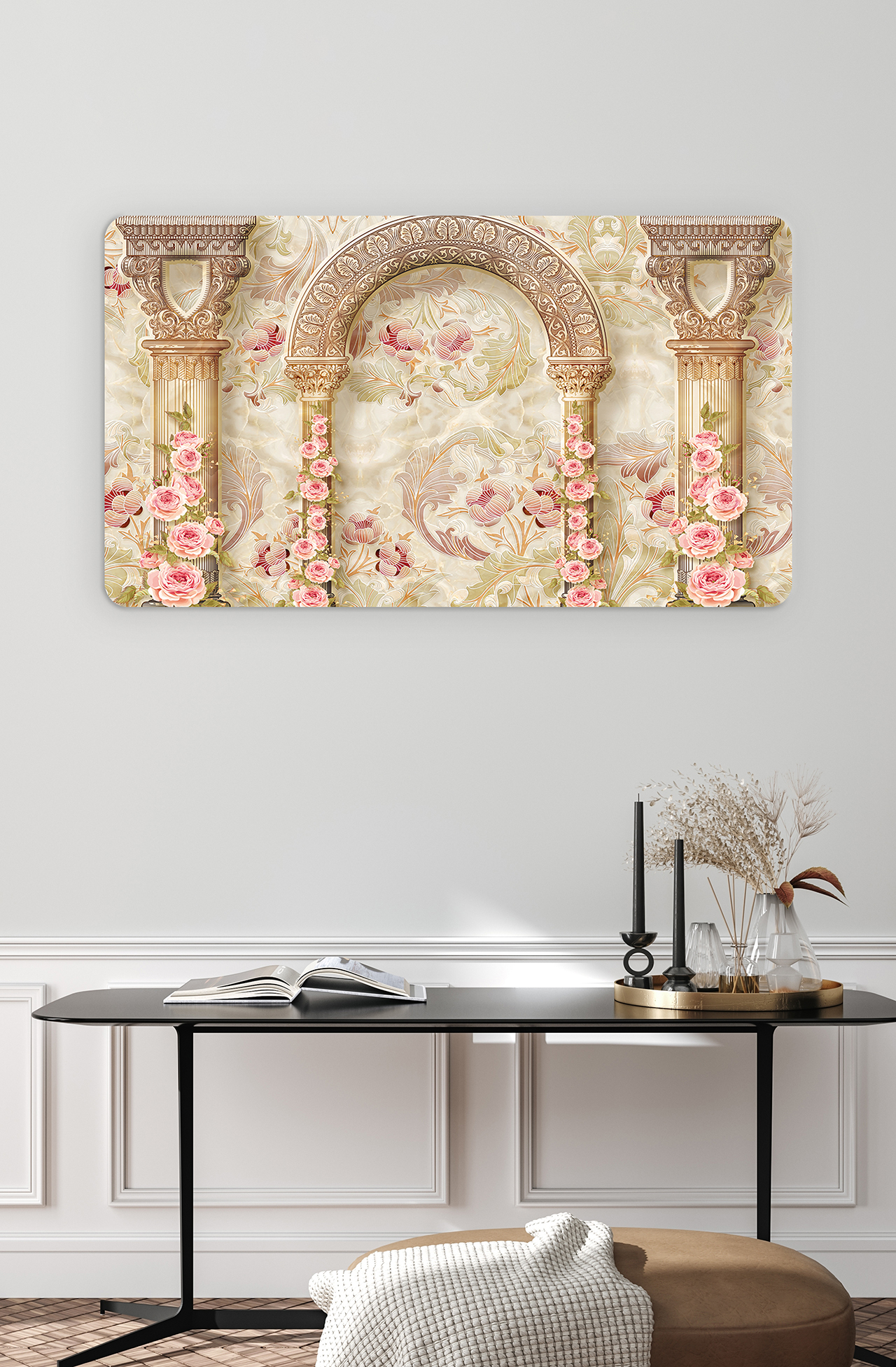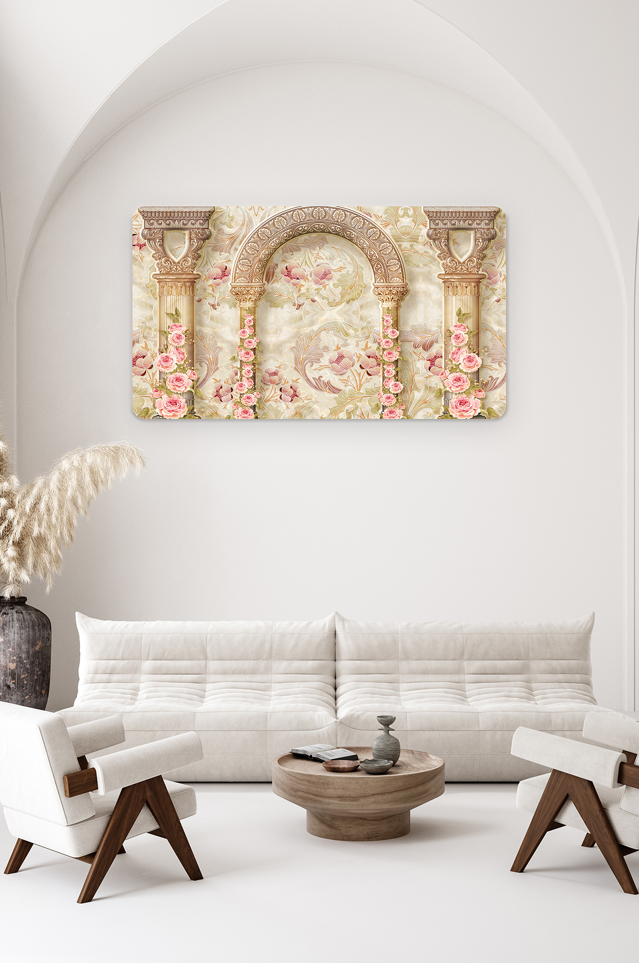 Klasik Kemerli Yapı ve Güller Duvar Kağıdı – Zarif ve Şık Tasarım 🎨🚂