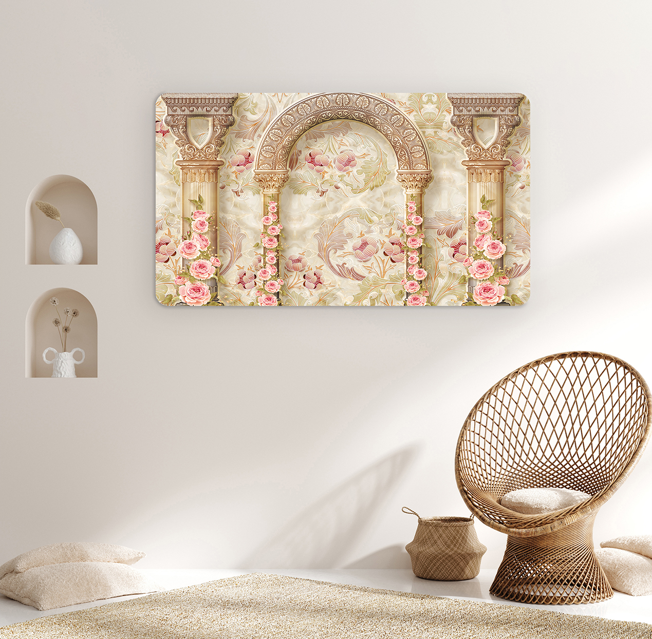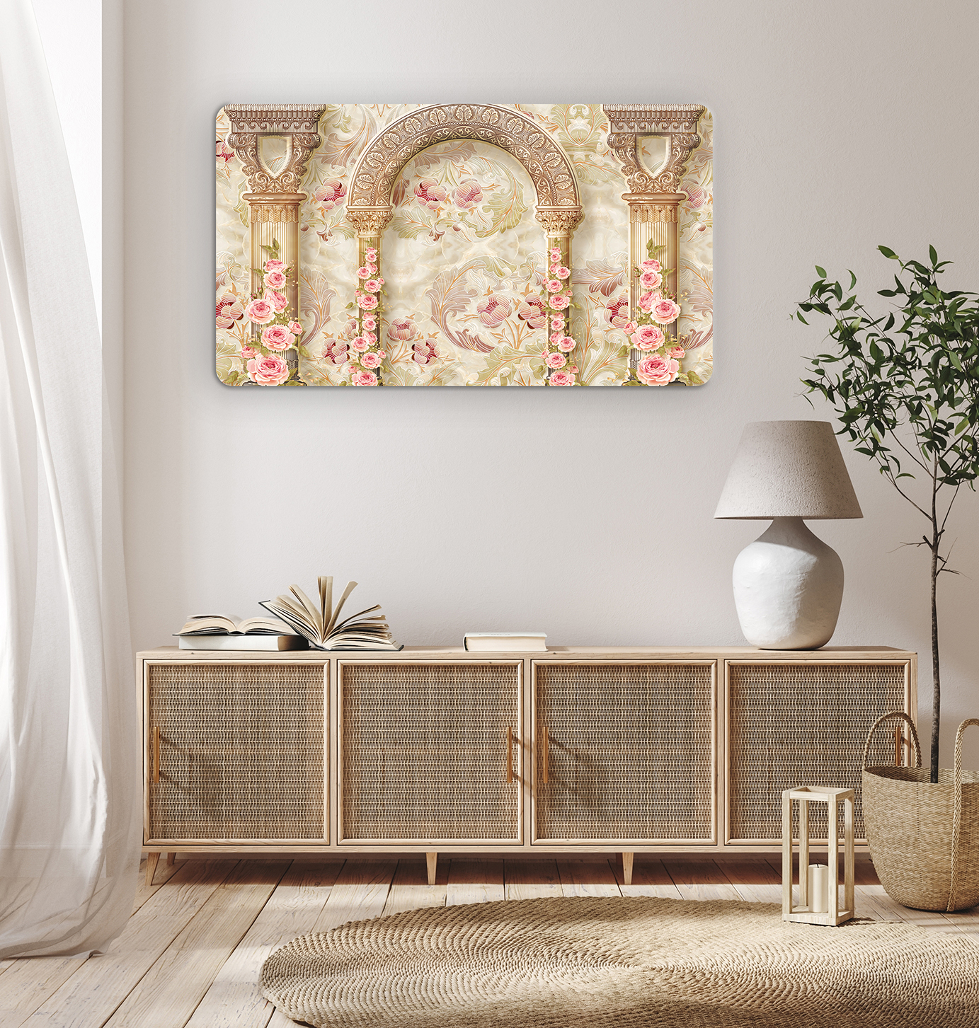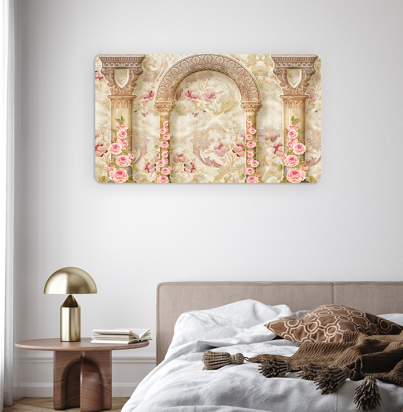 Klasik Kemerli Yapı ve Güller Duvar Kağıdı – Zarif ve Şık Tasarım 🎨🚂