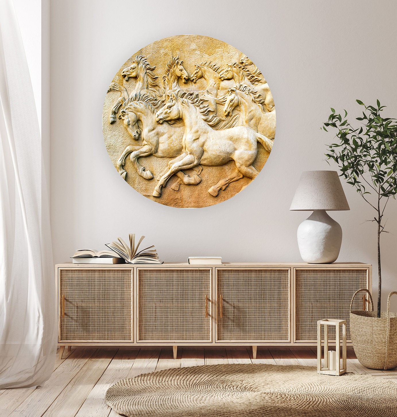 Koşan Atlar ve Doğal Tasarım Temalı Duvar Kağıdı – Sanatsal Yüzey Tasarımı 🎨🚂