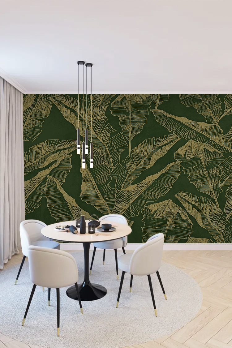 Koyu Yaprak Deseni Duvar Kağıdı