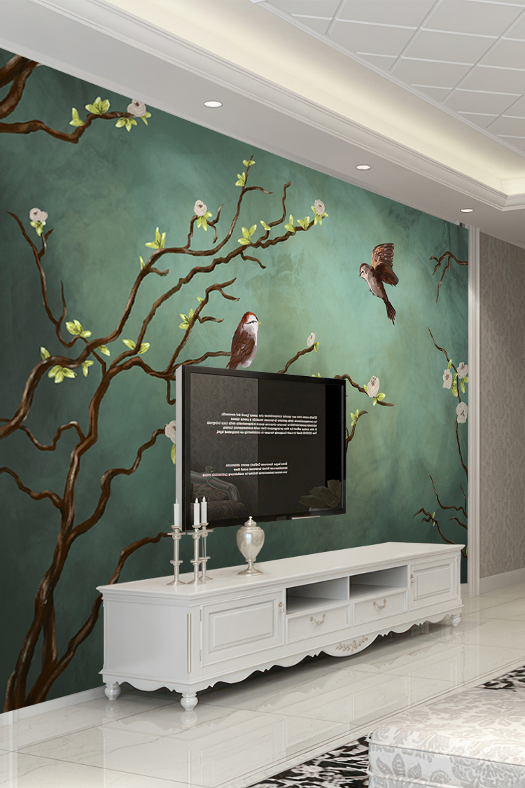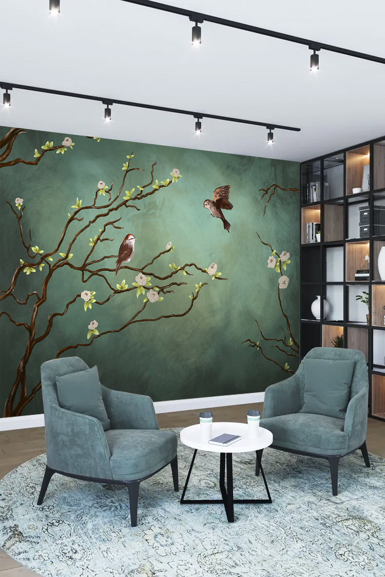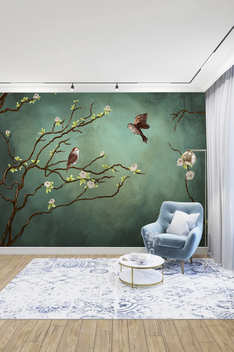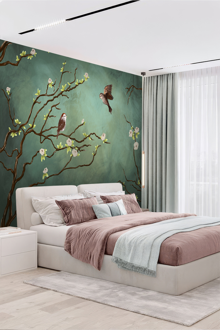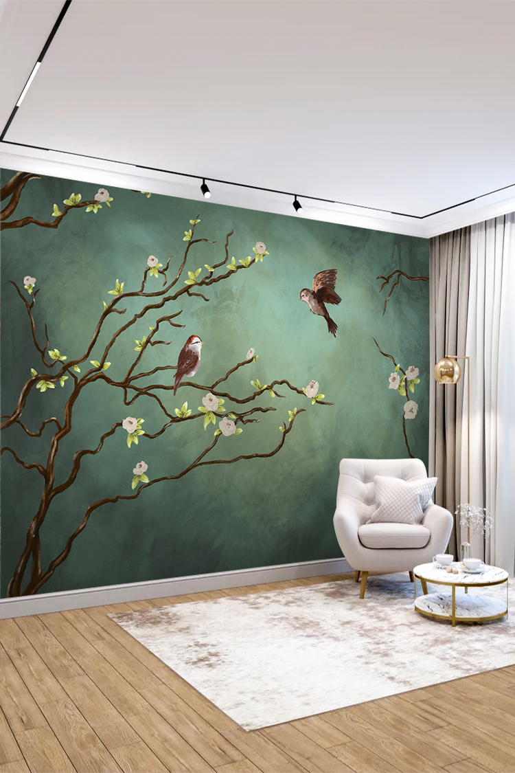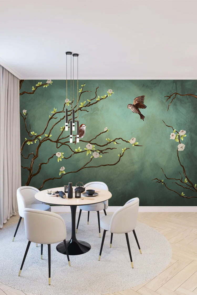 Kuğu ve Çiçek Desenli Duvar Kağıdı