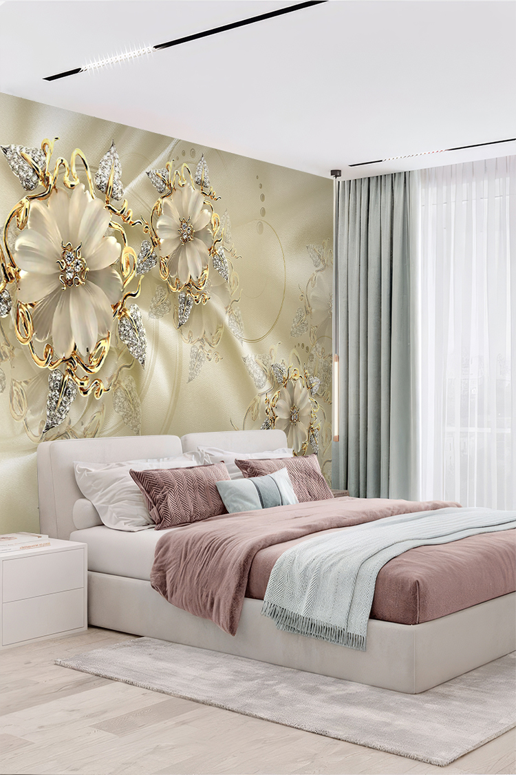 Lüks Altın Çiçek Deseni Duvar Kağıdı