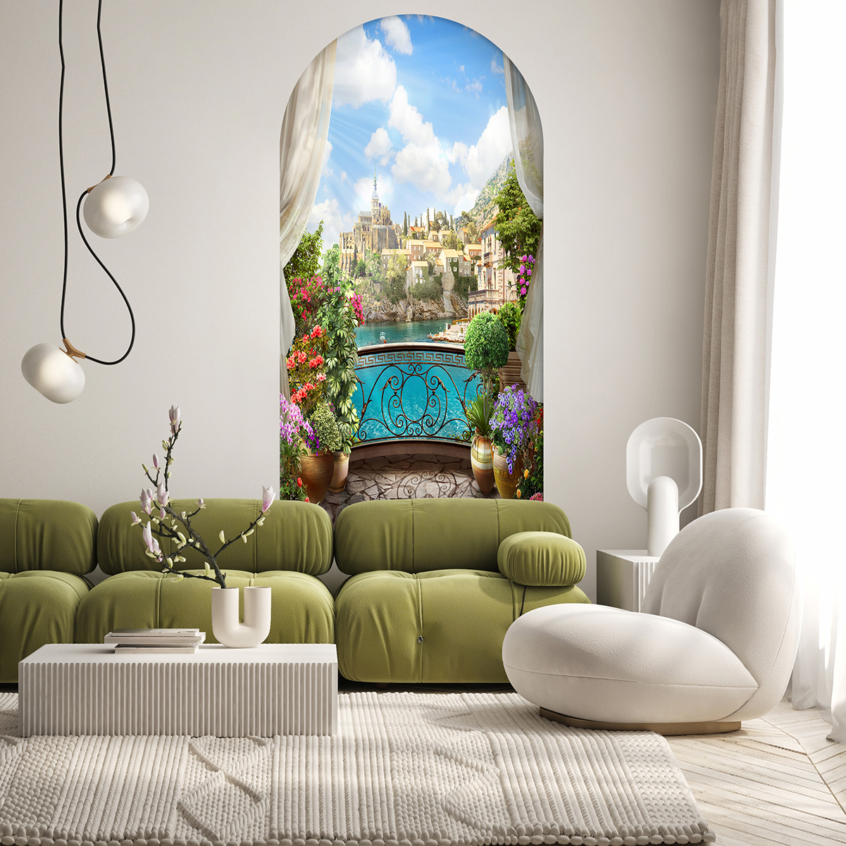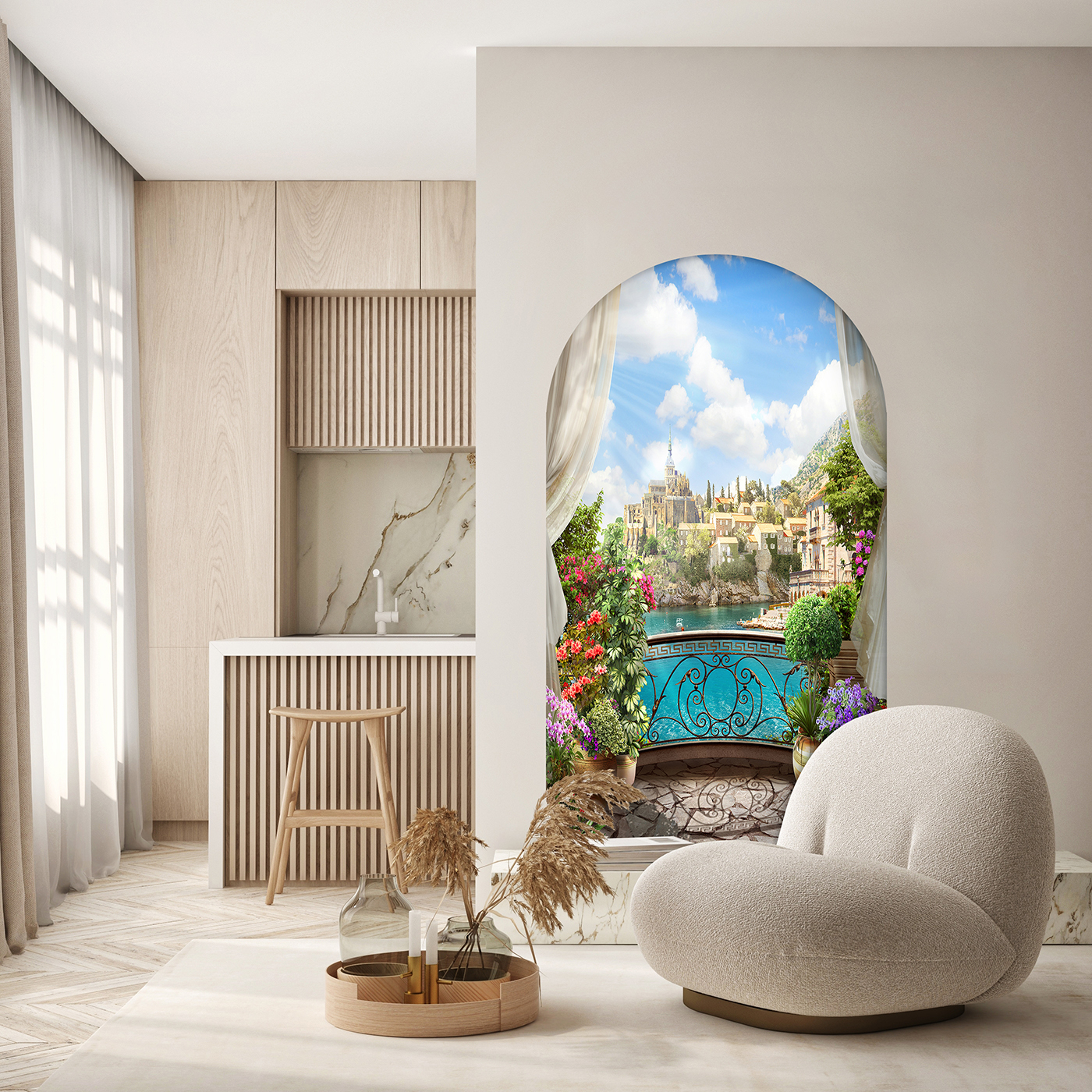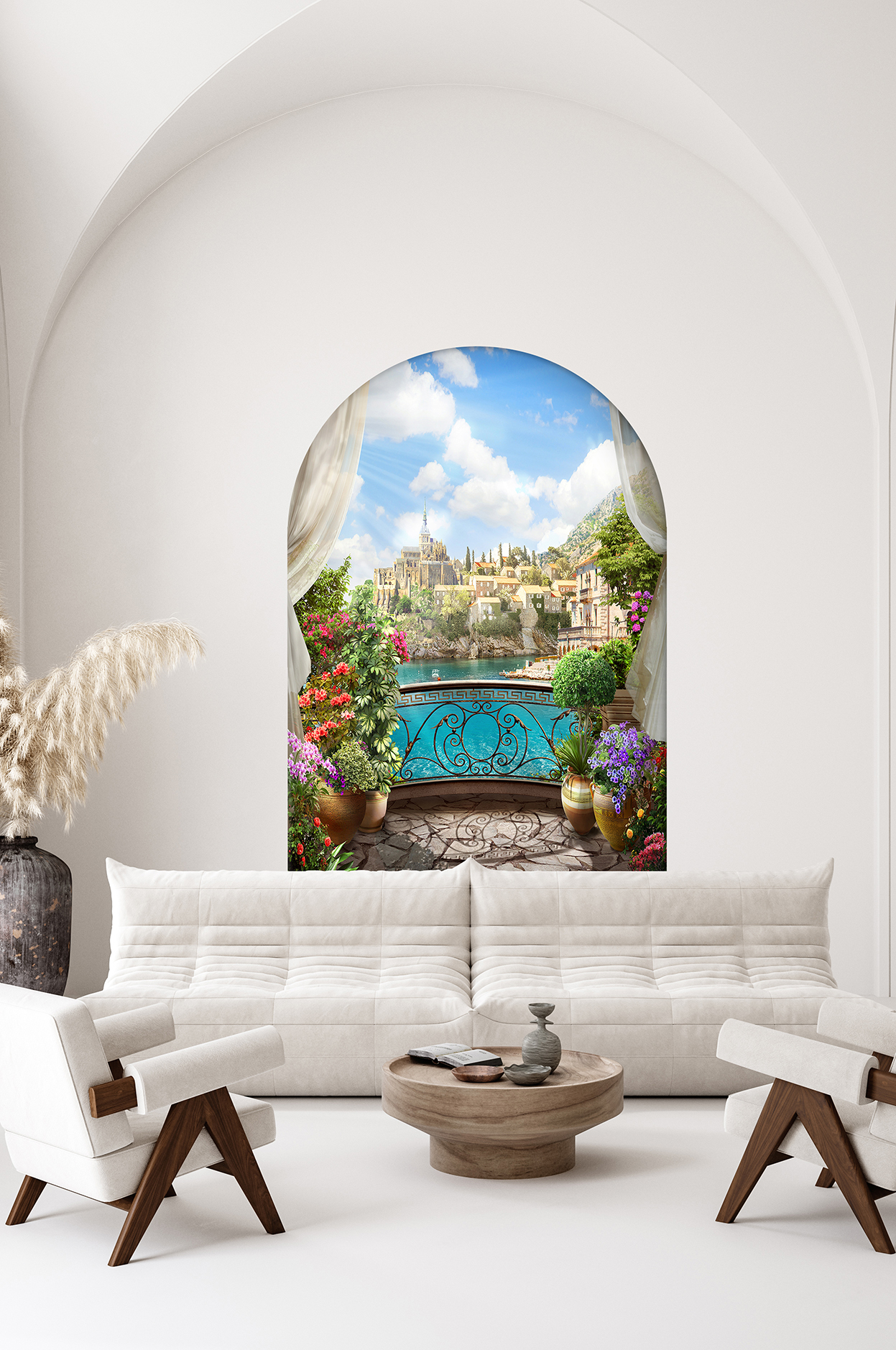Manzaralı Balkon Duvar Kağıdı – Şık ve Modern 🎨🚂