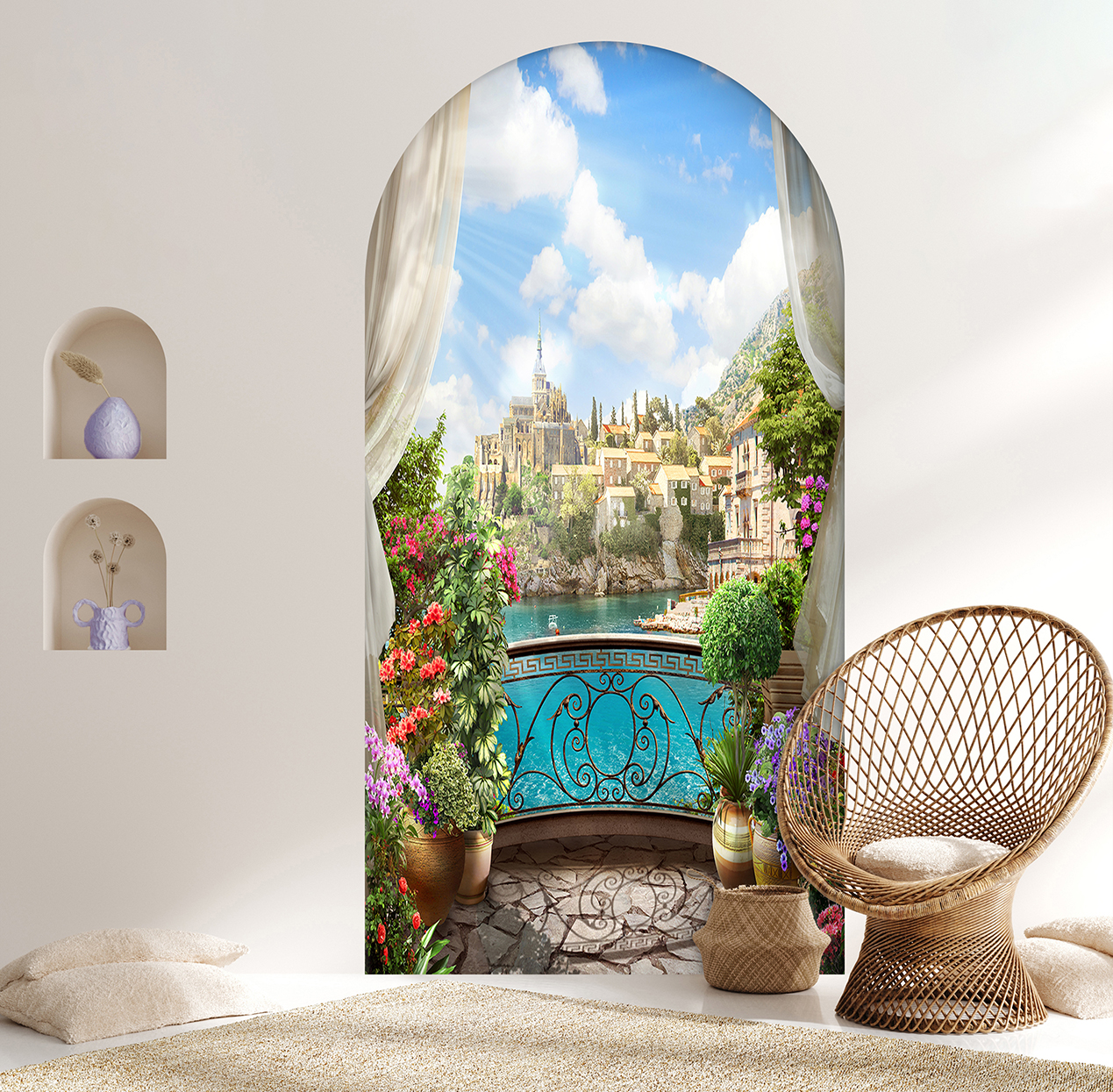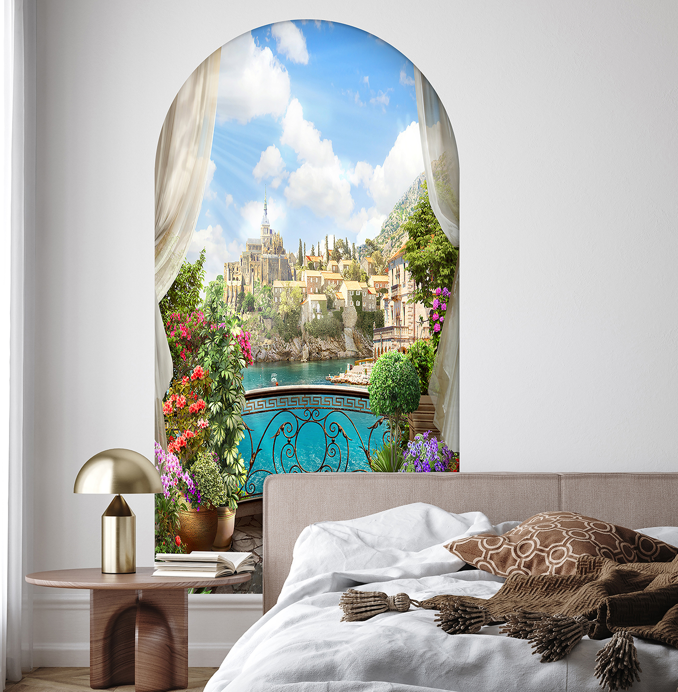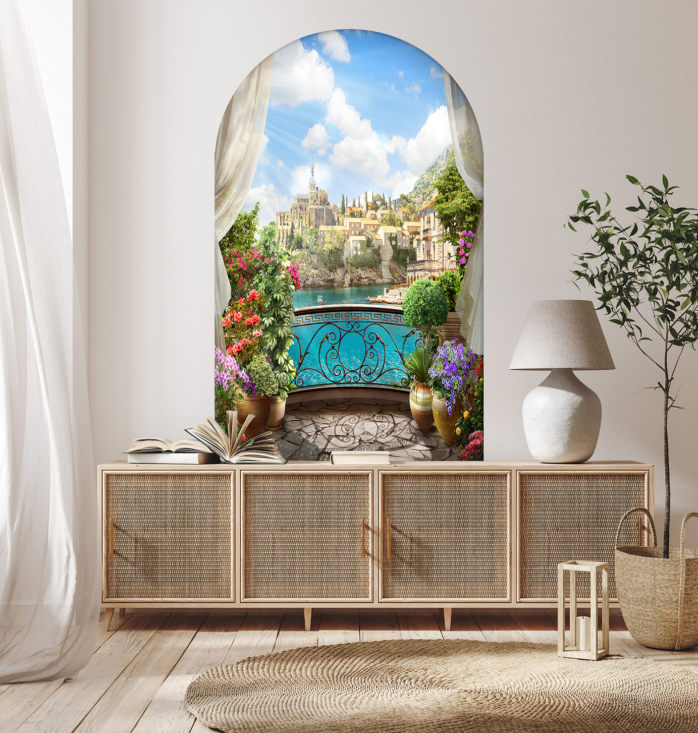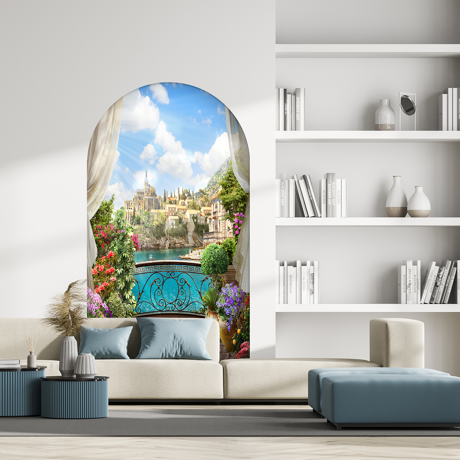 Manzaralı Balkon Duvar Kağıdı – Şık ve Modern 🎨🚂