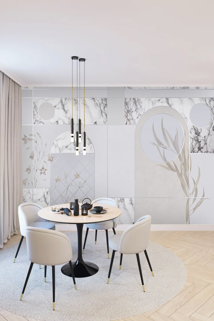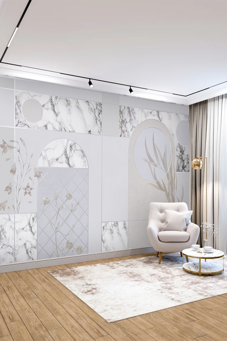Marble Desenli ve Doğal Dal Detaylı Modern Duvar Kağıdı