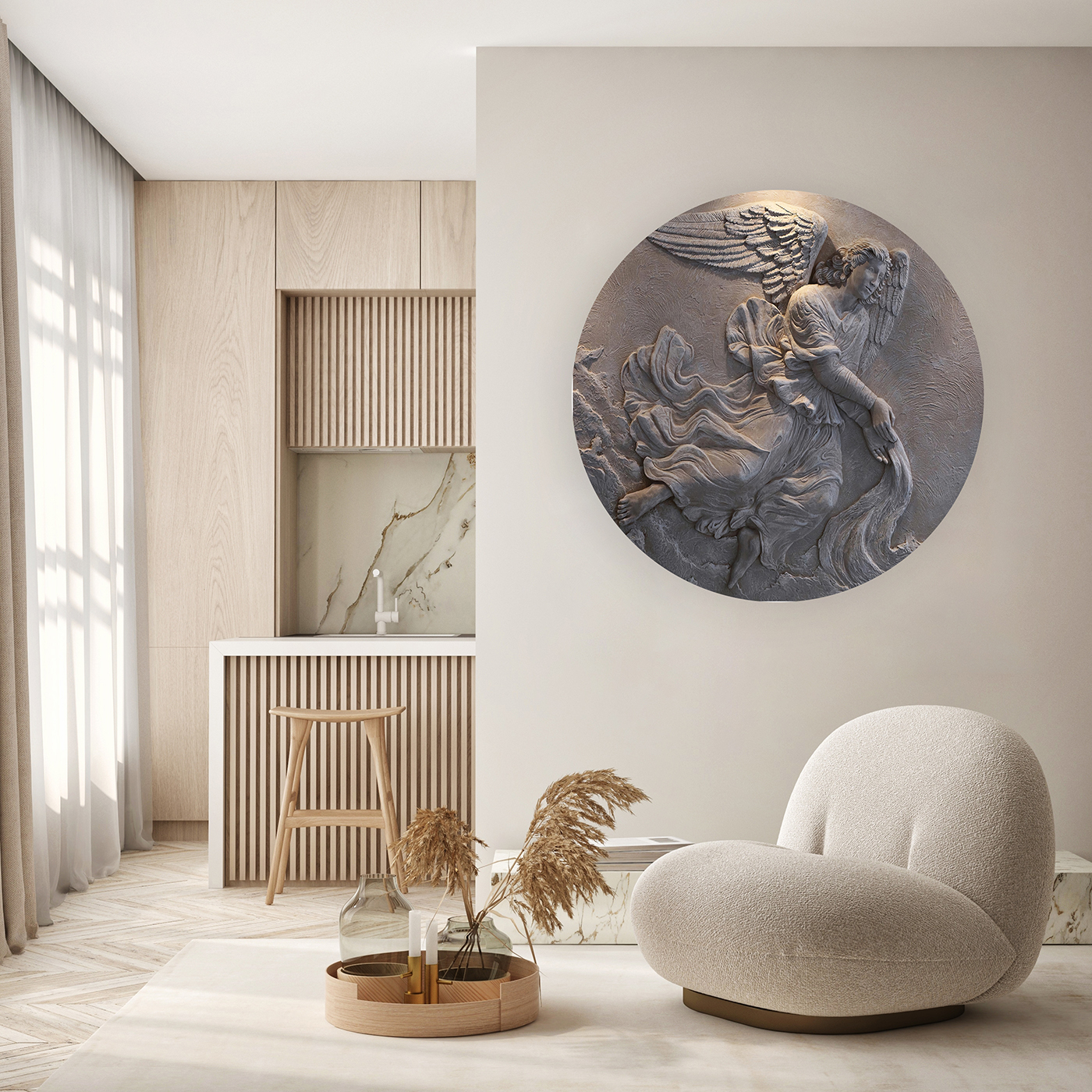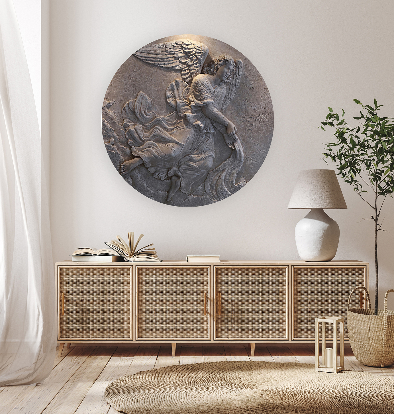 Melek Heykel Tasarımı ve Zarif Yüzey Temalı Duvar Kağıdı – Sanatsal Tasarım 🎨🚂