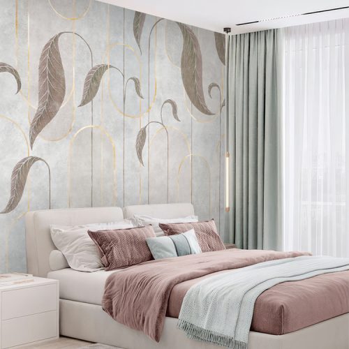 Altın Vurgulu Yaprak Desenli Duvar Kağıdı