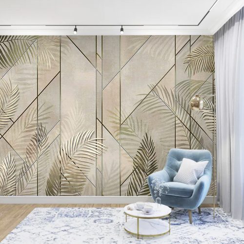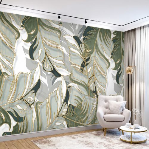 Altın Yapraklar ile Tropikal Duvar Kağıdı – Modern ve Şık Tasarım
