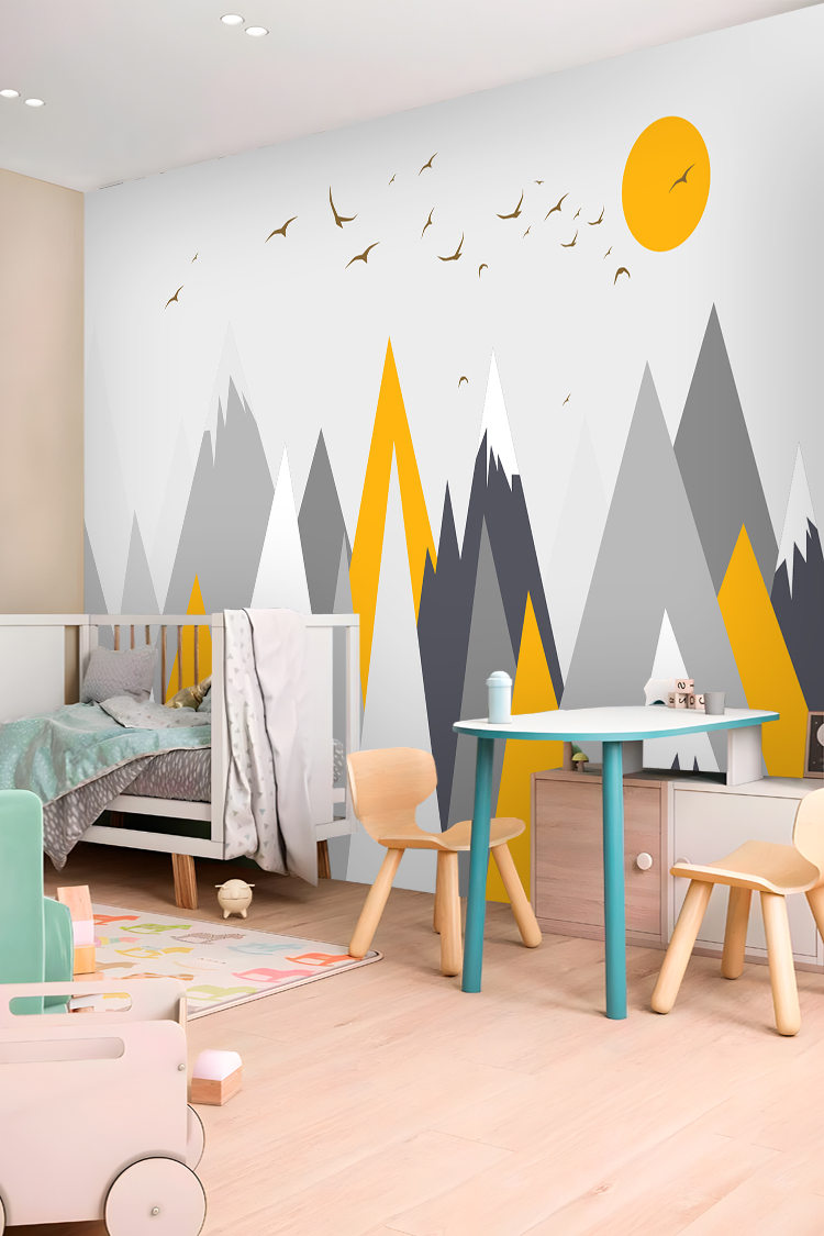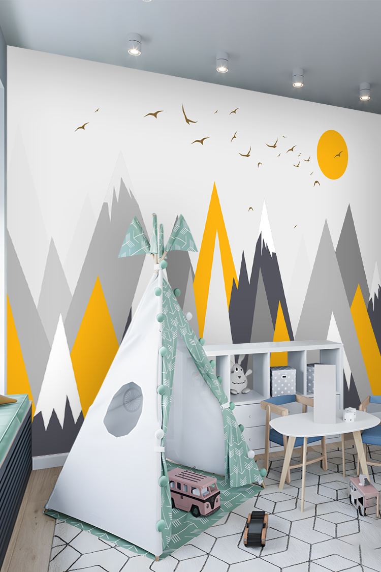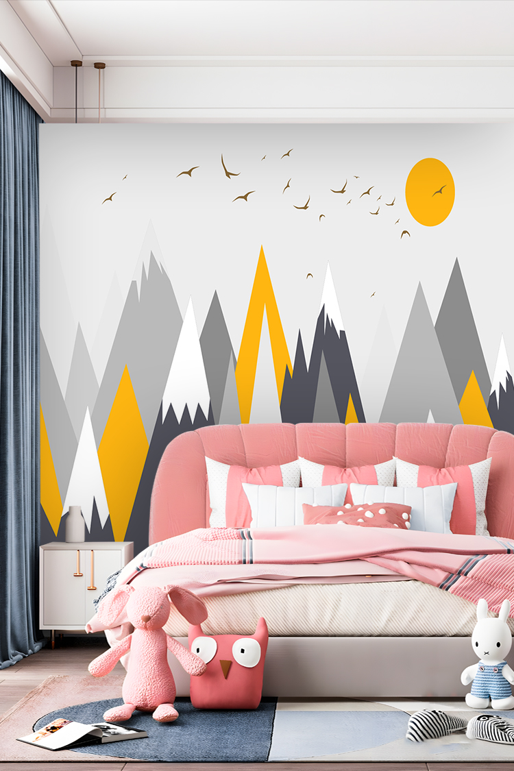 Minimalist Dağ ve Güneş Duvar Kağıdı