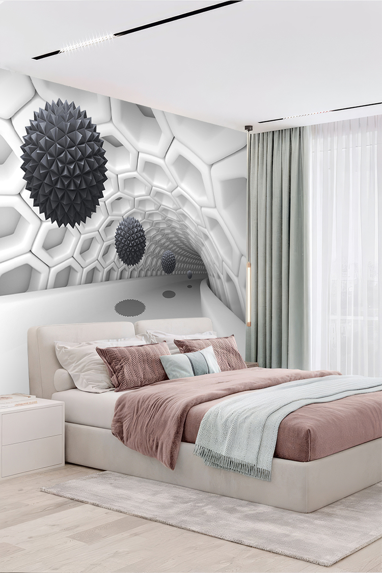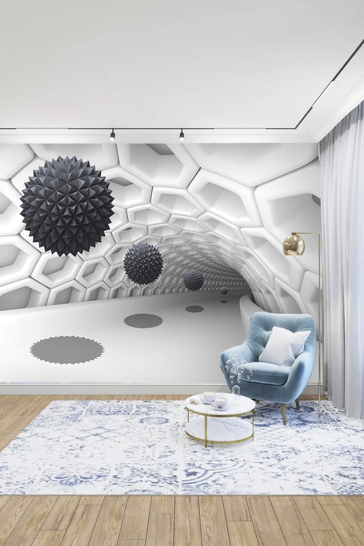 Modern 3D Küre Süslemeli Balpeteği Desenli Duvar Kağıdı
