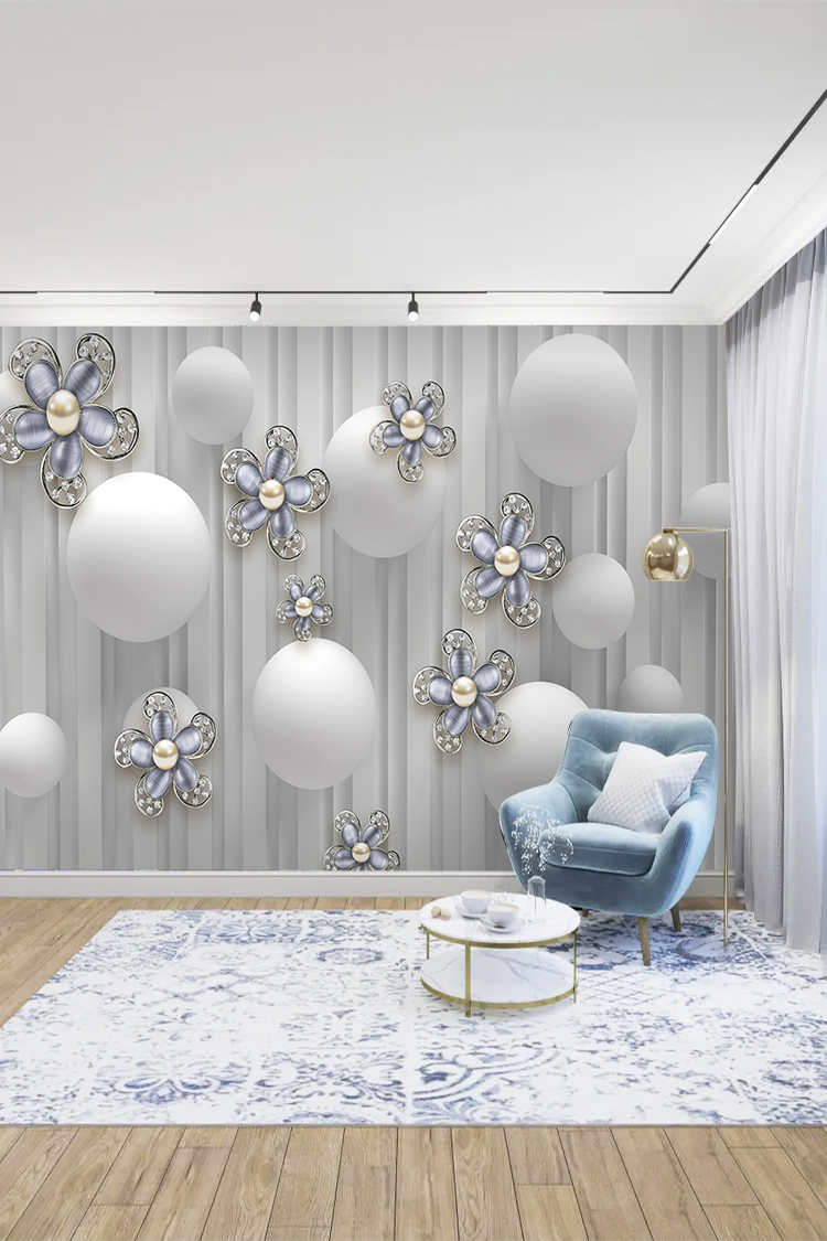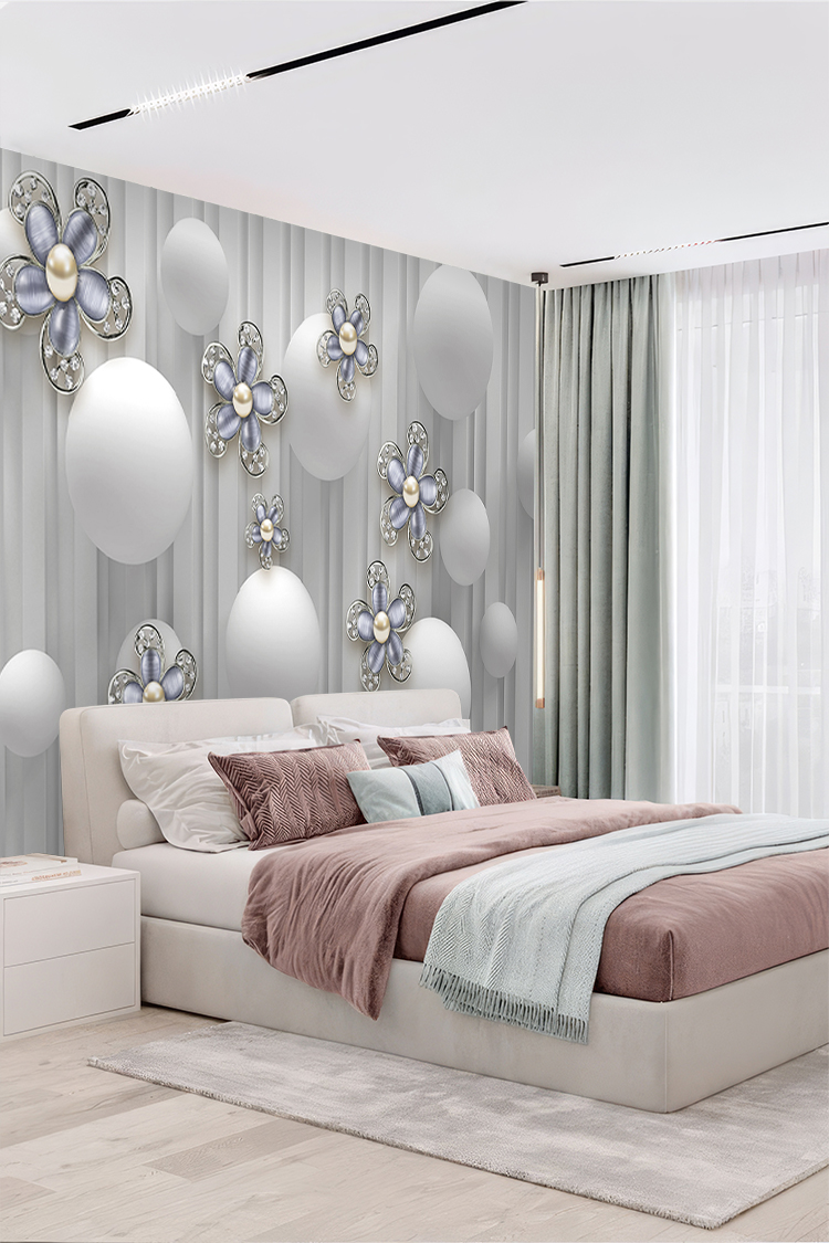 Modern Çiçekli ve Toplu Duvar Kağıdı