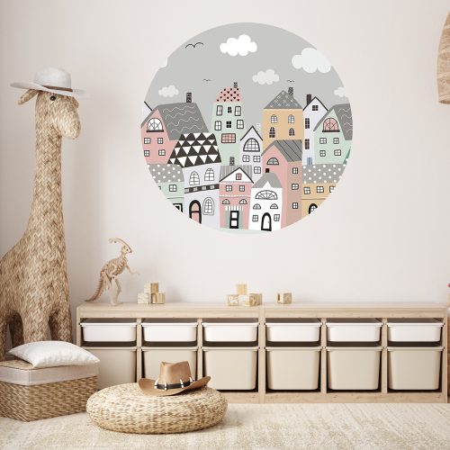Çocuk Odası İçin Pastel Evler Temalı Duvar Kağıdı – Yaratıcı Tasarım