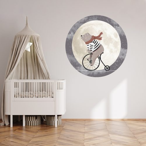 Ay Işığında Bisiklet Süren Ayı Duvar Kağıdı – Çocuk Odası İçin Eğlenceli Tasarım