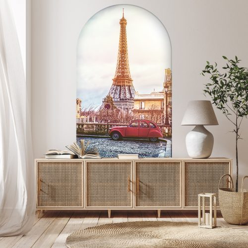 Paris Manzaralı Kırmızı Araba Duvar Kağıdı – Şık Dekorasyon