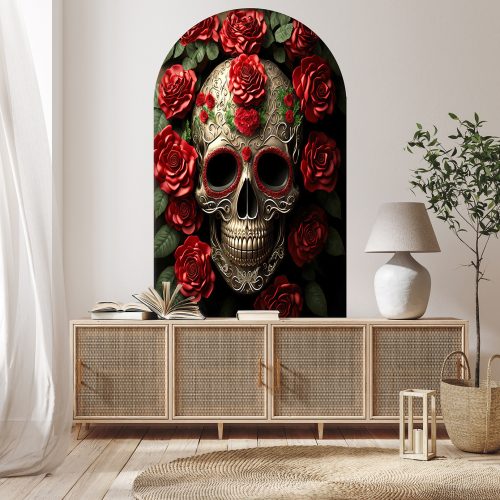 Kafatası ve Gül Temalı Duvar Kağıdı – Gotik Tasarım