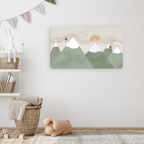 Dağlar ve Uçaklı Duvar Kağıdı – Yumuşak Tonlar ve Modern Tasarım