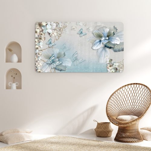 Mavi Çiçekli Kelebekli Duvar Kağıdı – Zarif Tasarım
