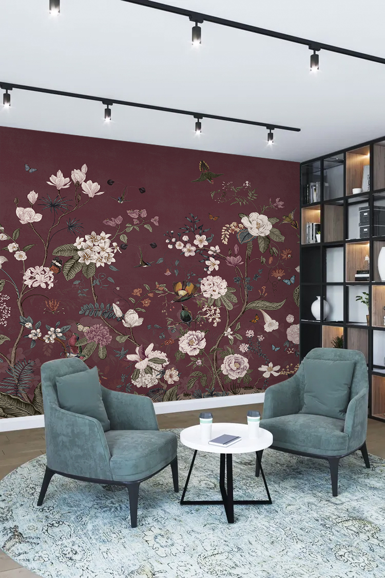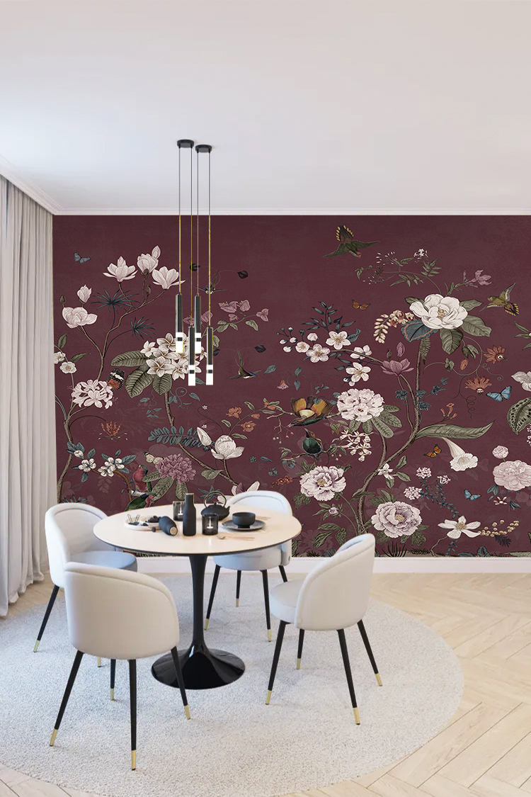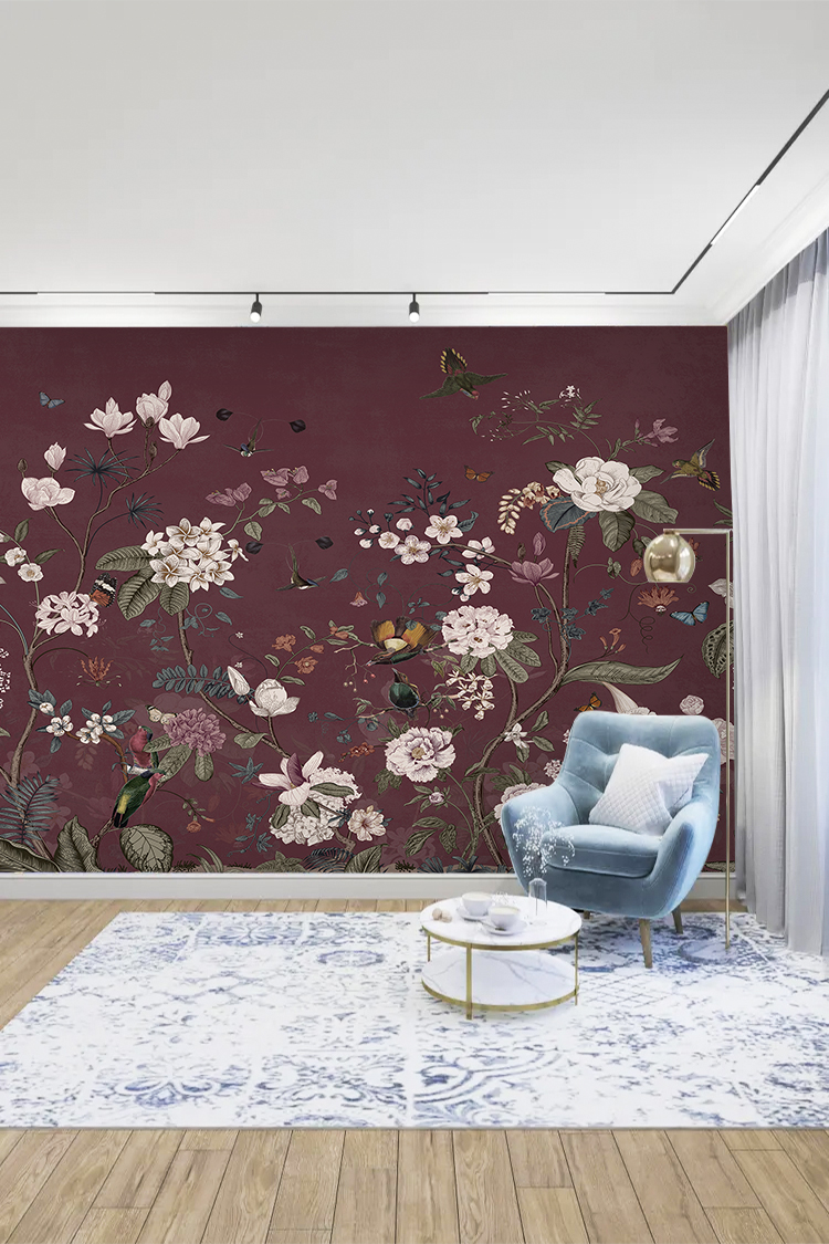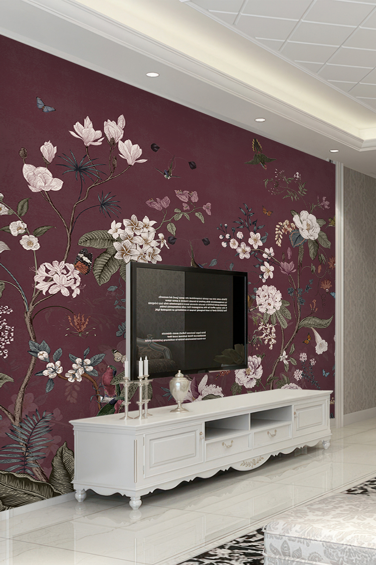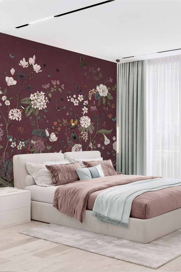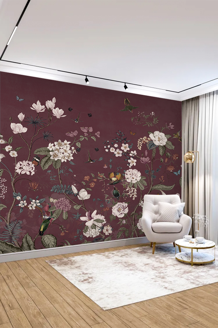 Mor Doğa Temalı Çiçekli Duvar Kağıdı