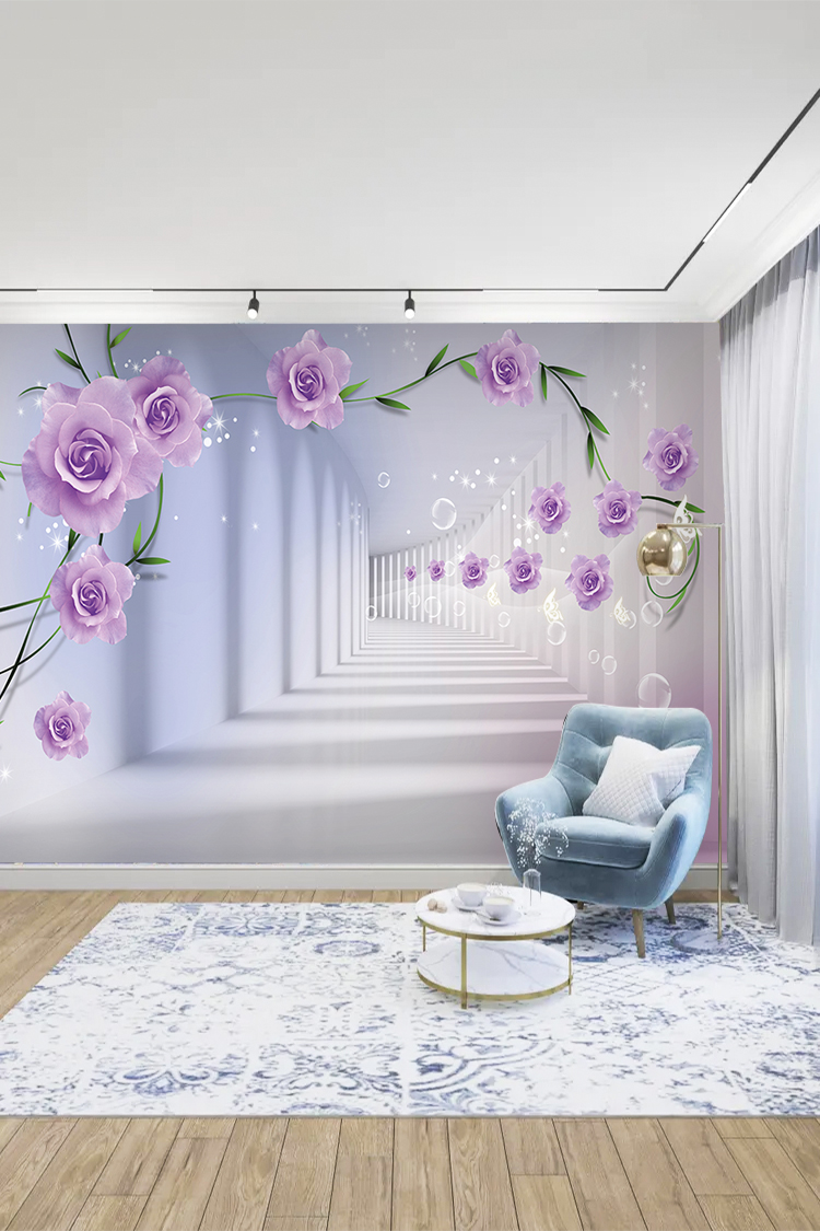Mor Güller ile Derinlikli Duvar Kağıdı