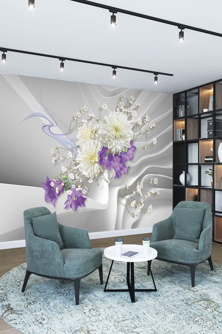 Mor ve Beyaz Çiçek Desenli Duvar Kağıdı
