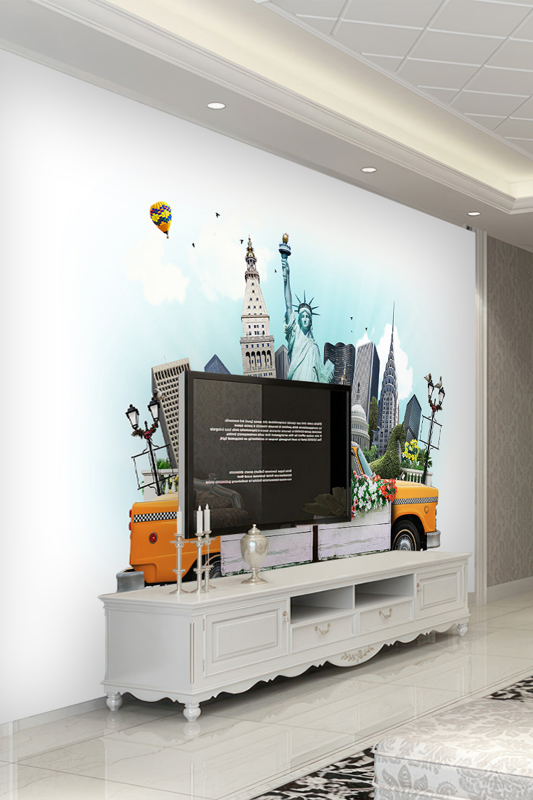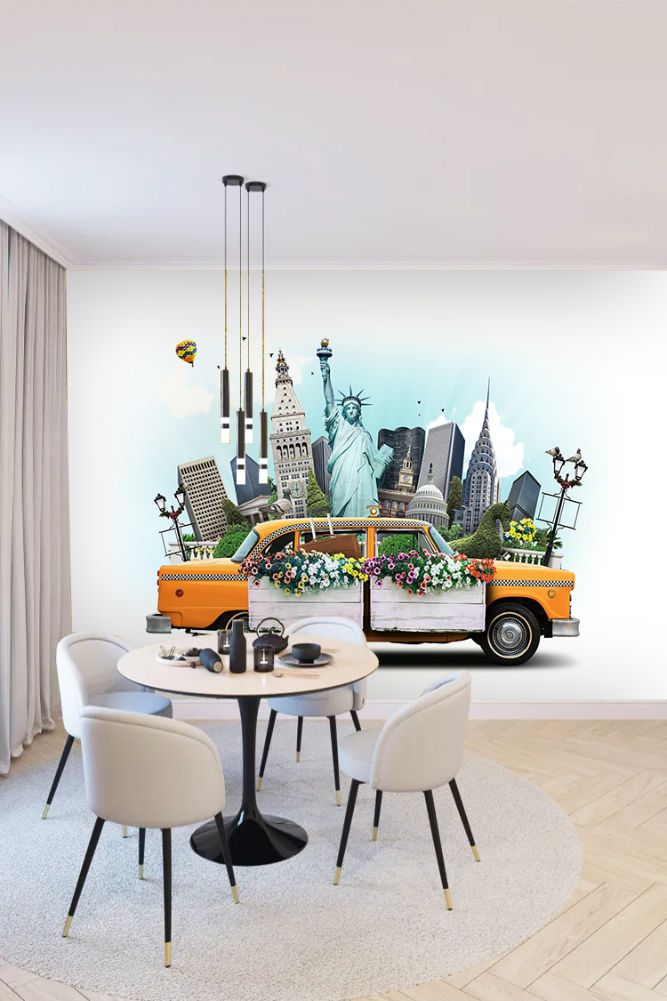 New York Şehri ve Sarı Taksi Pop Art Şehir Duvar Kağıdı