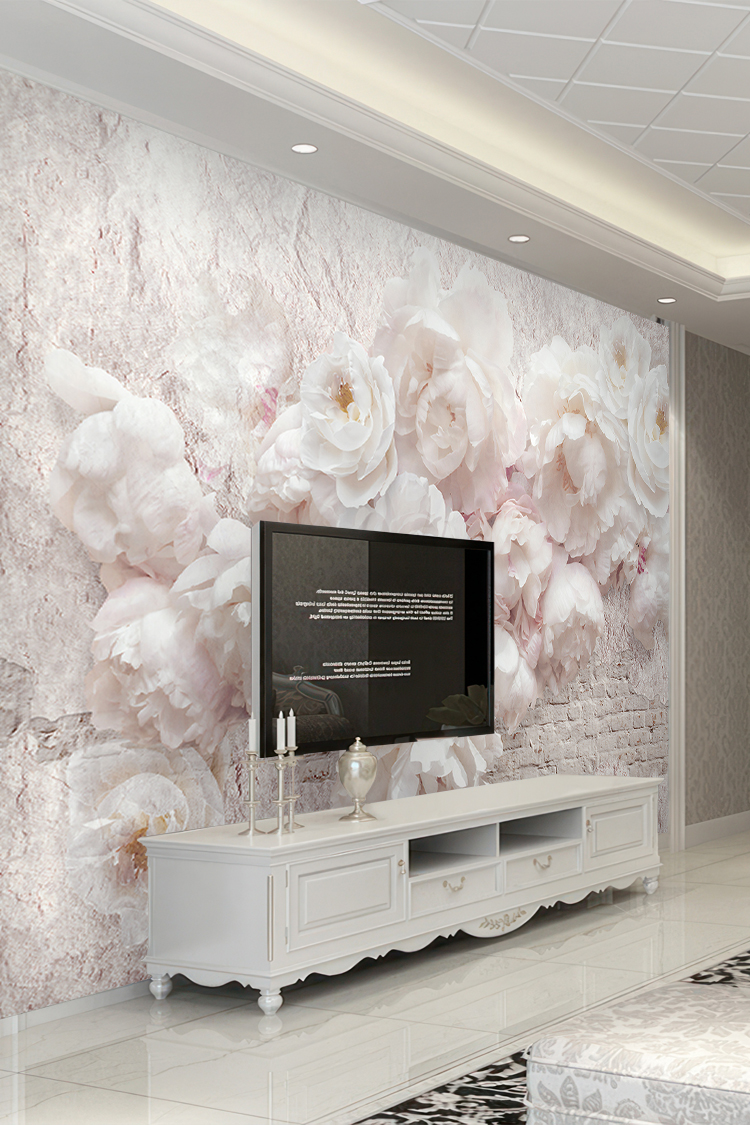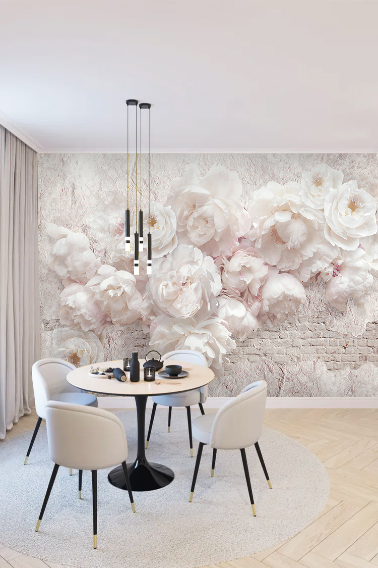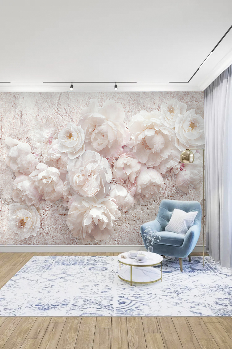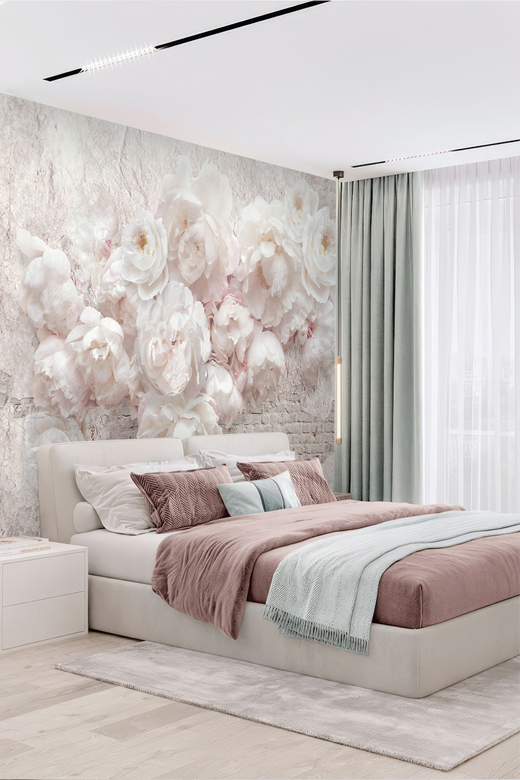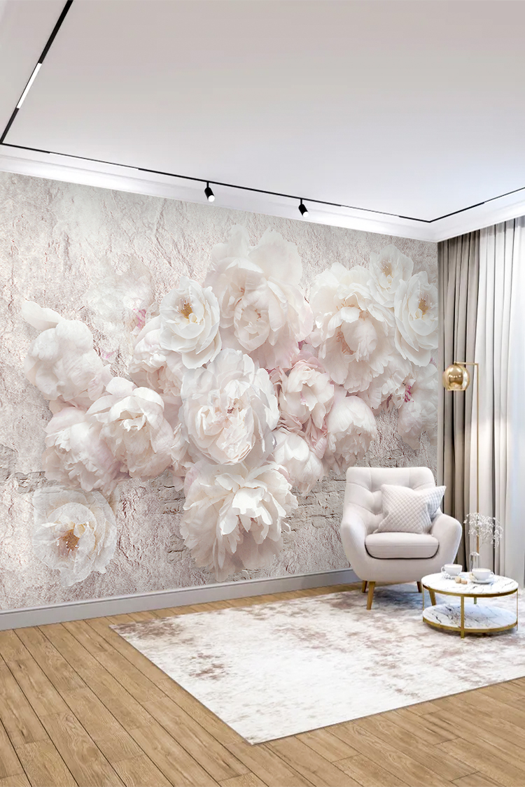 Pastel Beyaz Çiçek Desenli Duvar Kağıdı